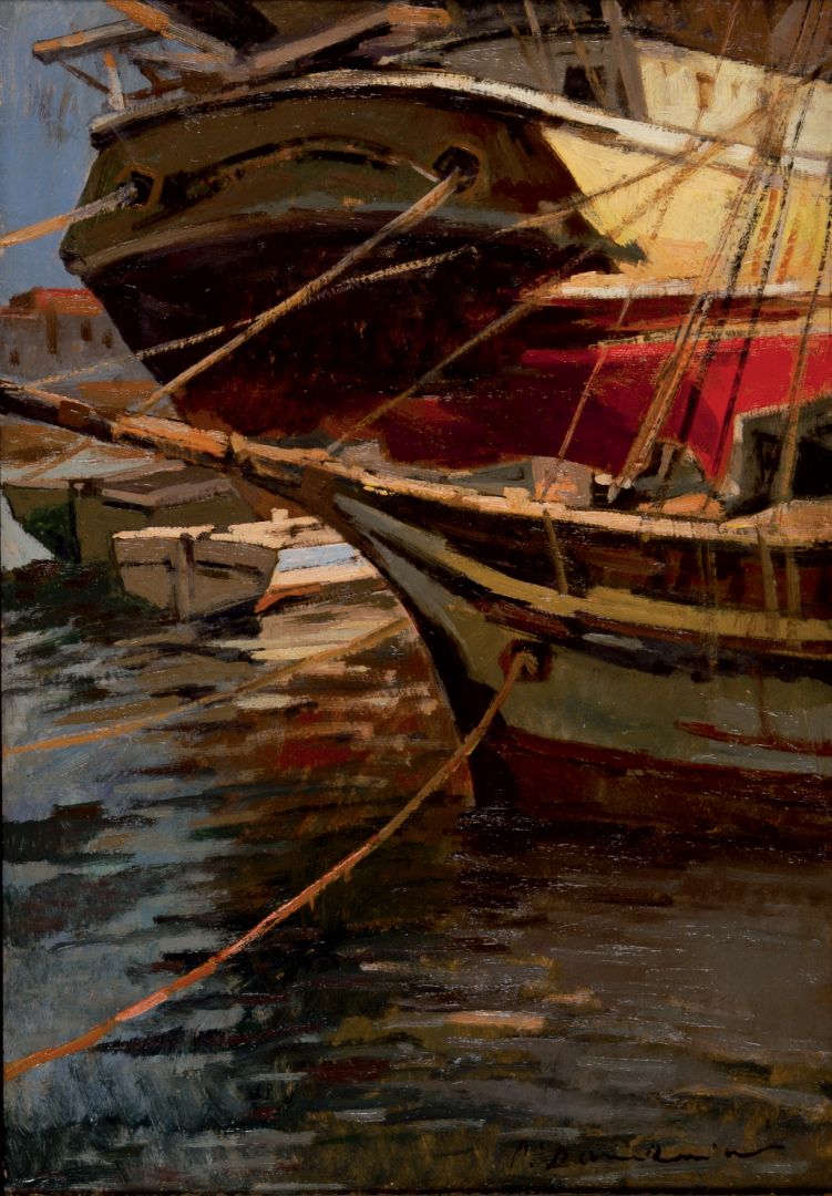 CARLO DOMENICI Livorno 1897- Portoferraio 1981 Porto di Livorno 1950 ca. Olio...