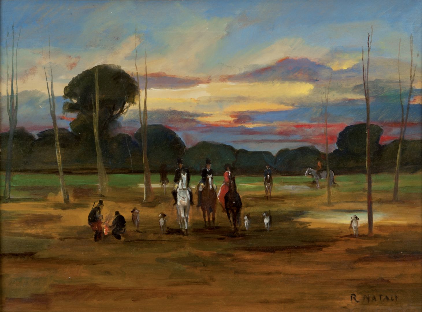 RENATO NATALI Livorno 1883 - 1979 La caccia Olio su tavoletta cm 31,5 x 43...