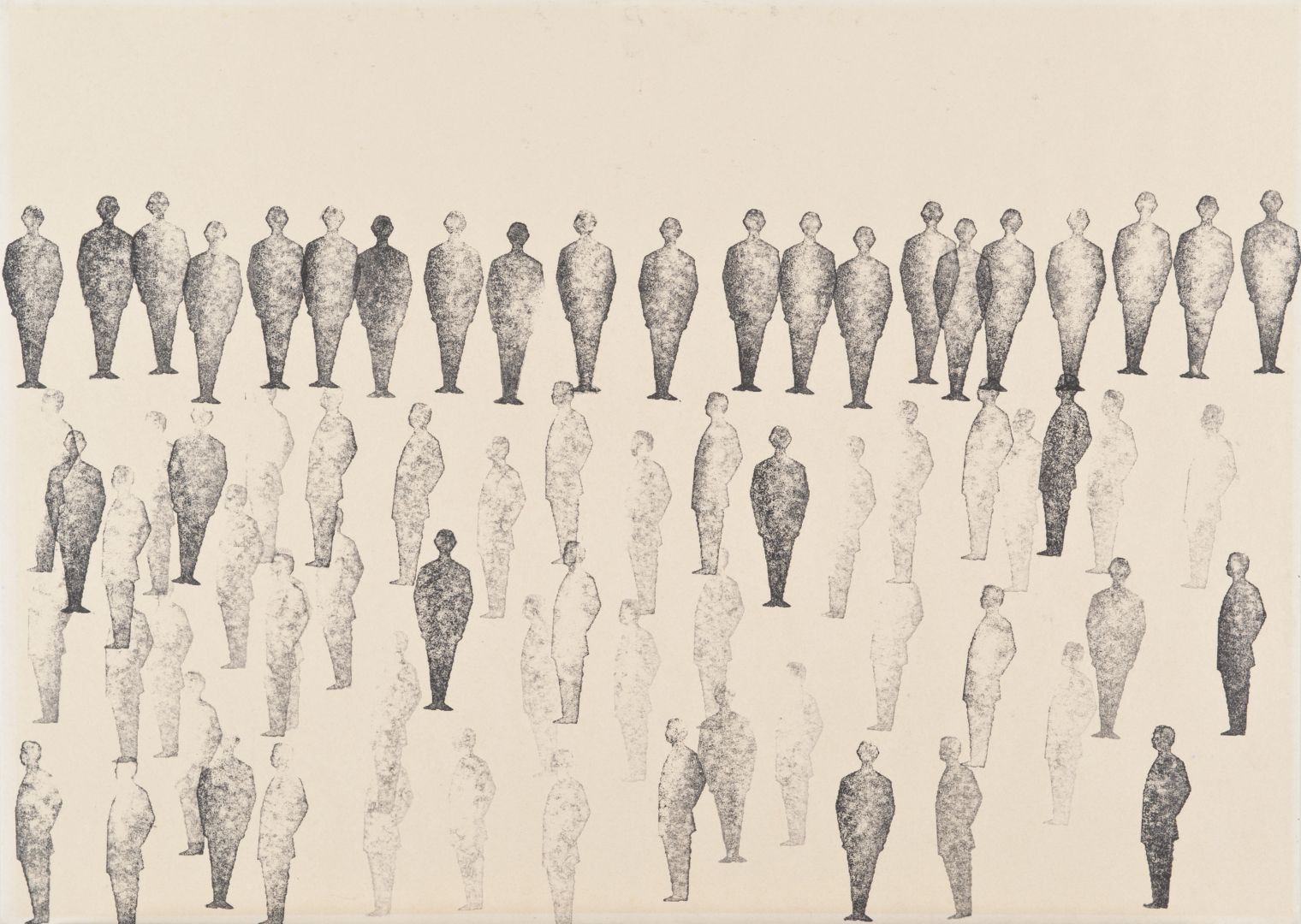 RENATO MAMBOR Roma 1936 - 2014 Uomini Timbro 1963 Tecnica mista su cartone...