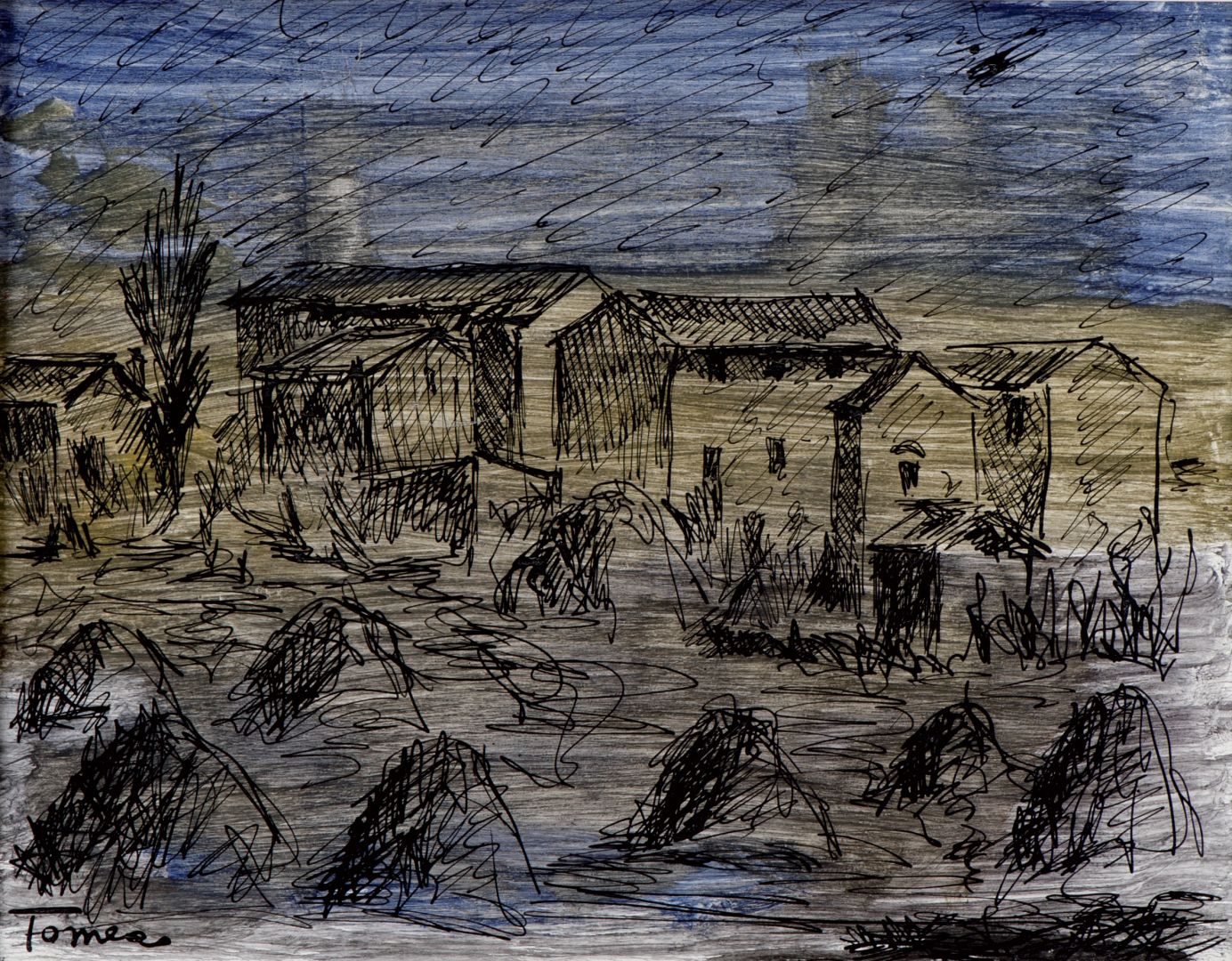 FIORENZO TOMEA Zoppè di Cadore 1910 - Milano 1960 Paesaggio Tecnica mista su...