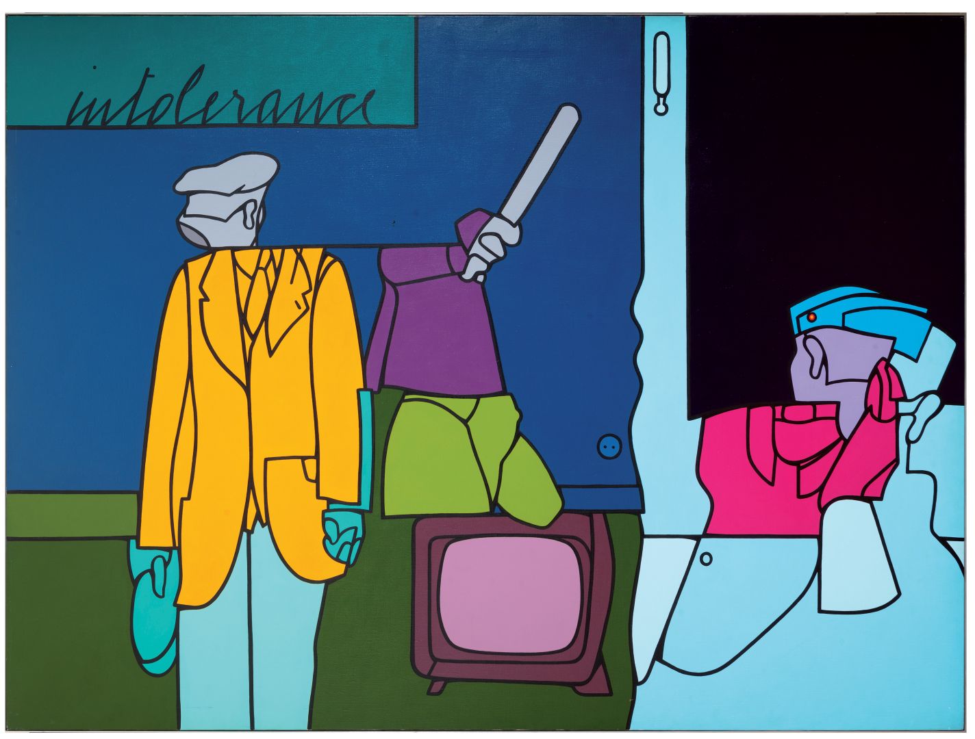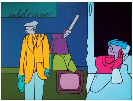 VALERIO ADAMI Bologna 1935 Intolerance 30 01.1974 Olio su tela cm 147 x 197...