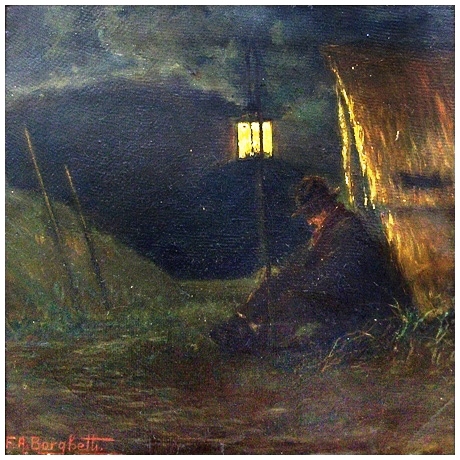 Lotto 33 | F.A. BORGHETTI Livorno La guardia notturna Olio su cartone 34 x 34. Firma in...