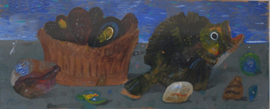 POSSENTI ANTONIO Lucca 1933 Un pesce nero - 1995 Olio su tavola 30 x 12 cm...