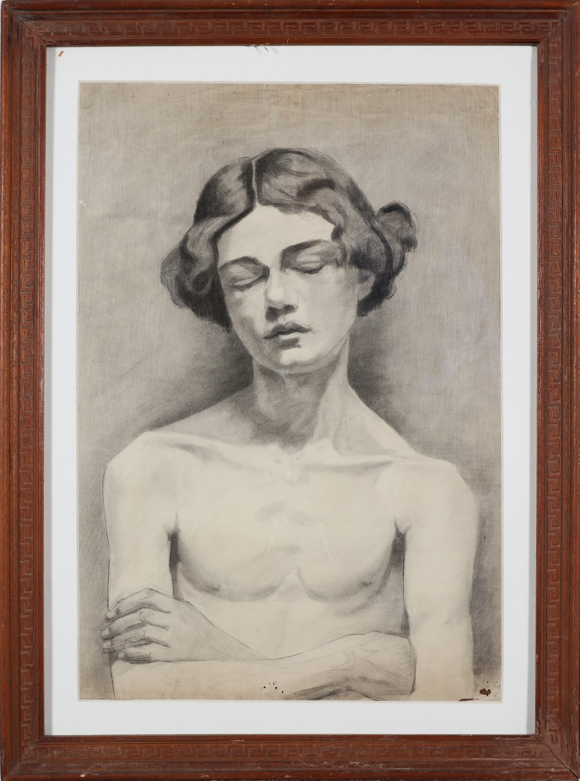LESSI TITO (1858 - 1917) Ritratto. Disegno a matita su carta. Cm 42,00 x 62,00. Presente piccolo strappo in basso a destra. Cornice presente
