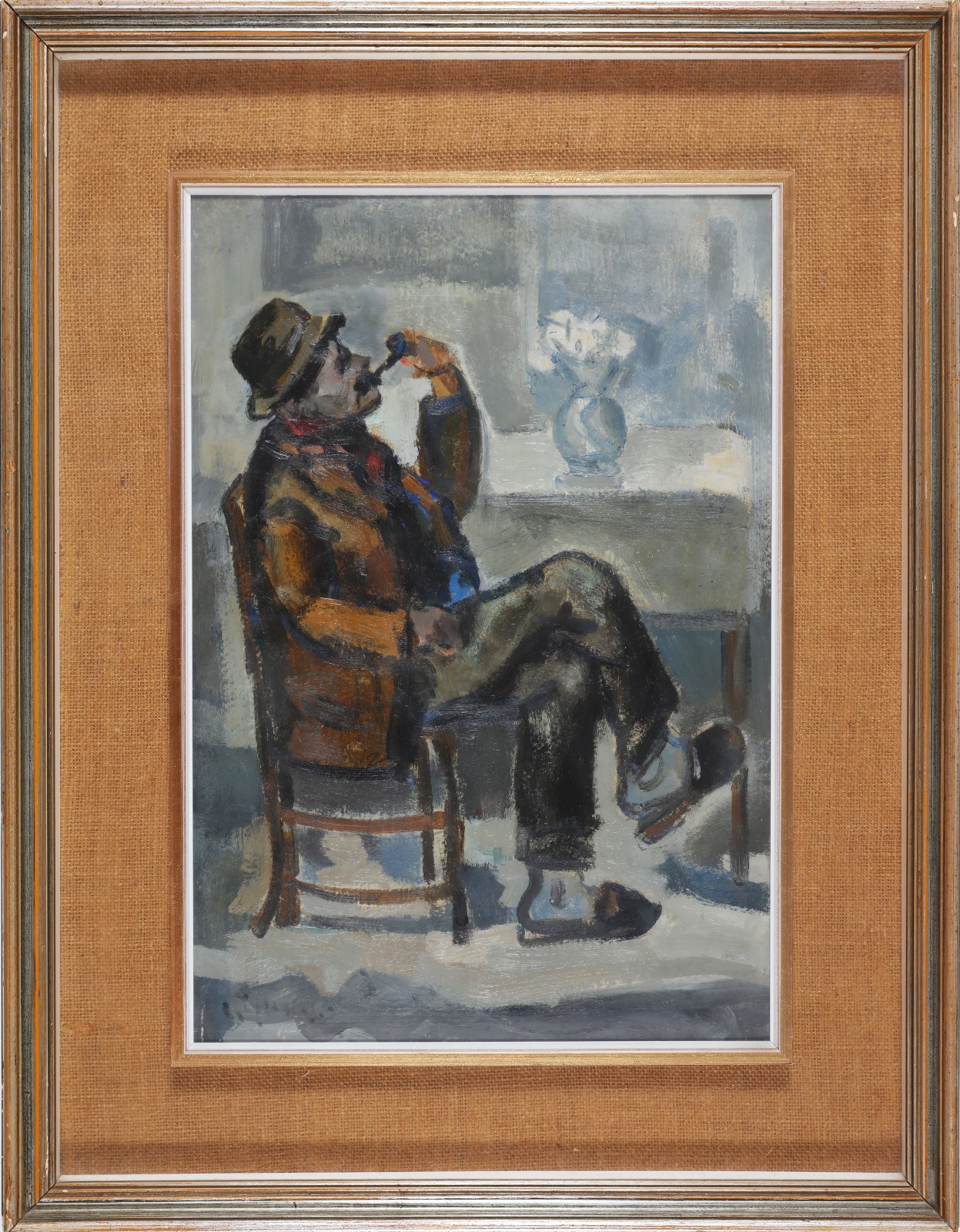 GAROSIO OTTORINO (1904 - 1980) Uomo con la pipa. Olio su cartone. Cm 34,50 x 51,50. Firma in basso a sinistra. Cornice presente