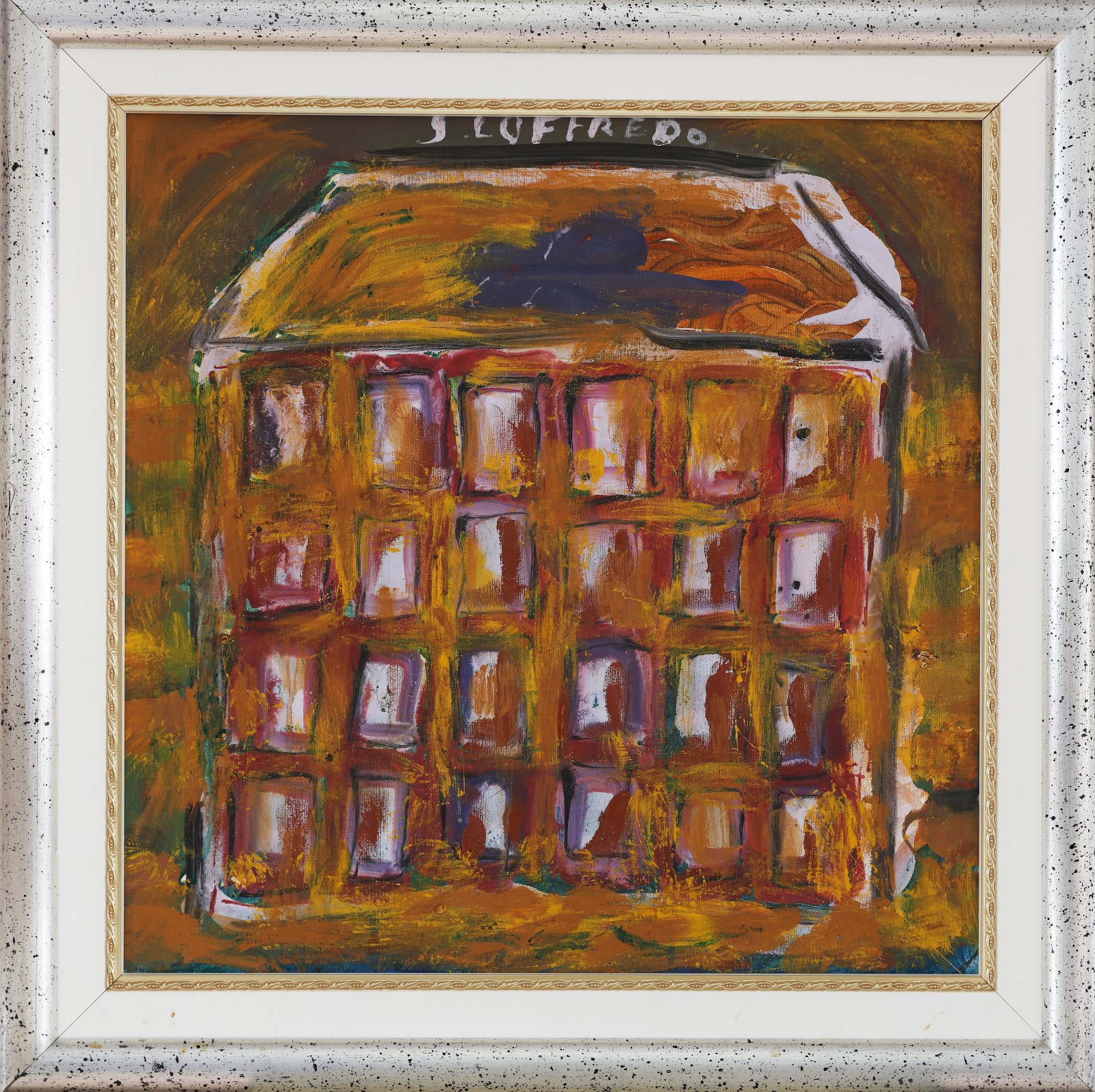 LOFFREDO SILVIO (n. 1921) Battistero. Olio su tela. Cm 50,00 x 50,00. Firma in alto al centro e al retro. Autentica dell'artista su fotografia. . Cornice presente