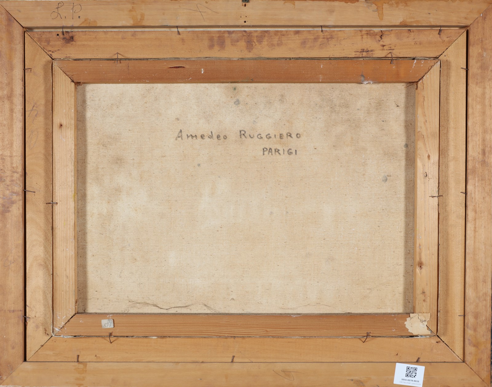 RUGGIERO AMEDEO (1912 - 1986) Parigi. Olio su tela. Cm 70,00 x 52,00. Firma in basso a sinistra, Firma e titolo al retro.