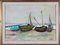 SUCCI GIUSEPPE (XX SEC.) Barche sulla spiaggia. Olio su cartone telato. Cm 70,00 x 50,00. Firma in basso a destra. . Cornice presente
