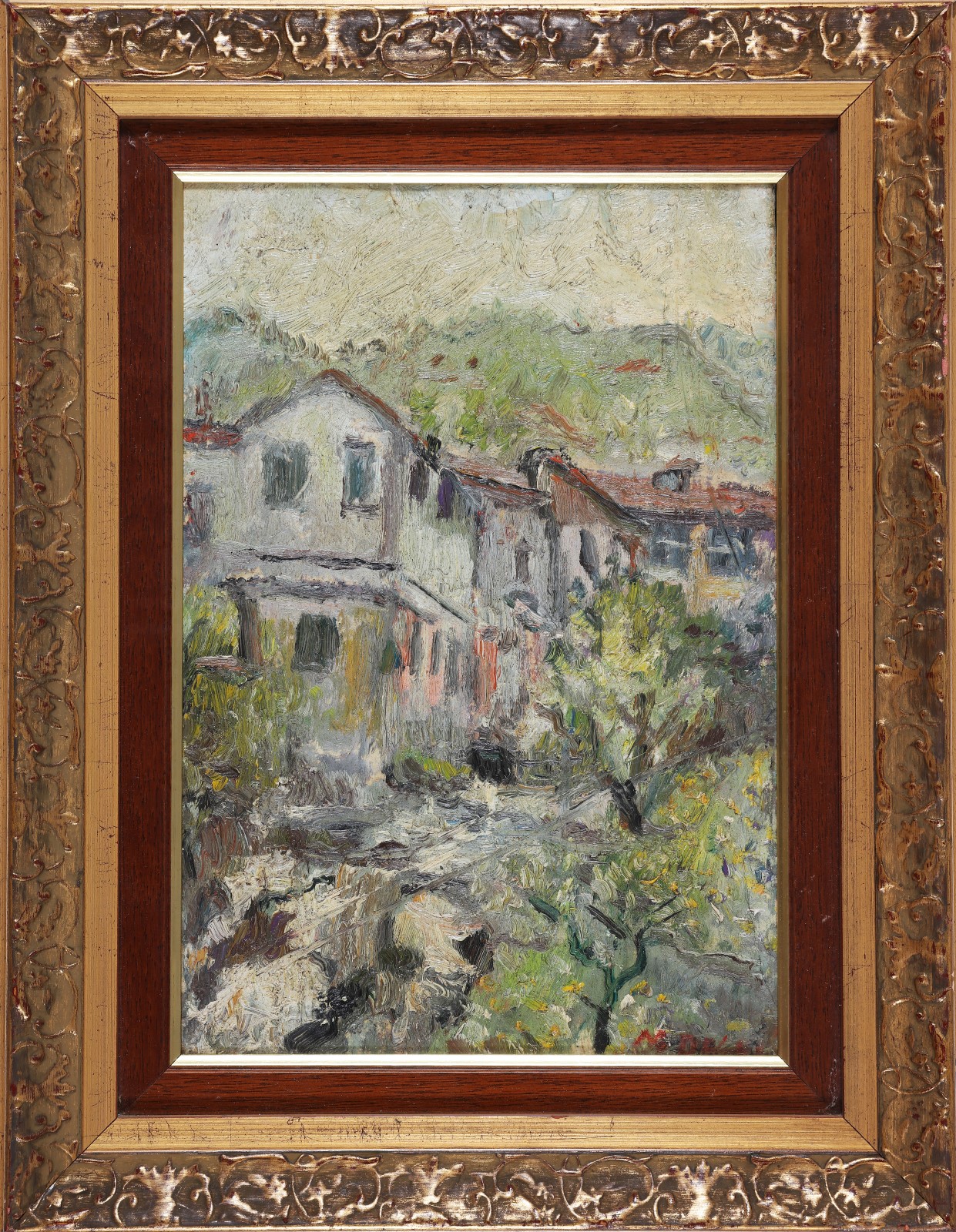DOLCI MARTINO (1912 - 1994) Case. Olio su tela applicata su tavola. Cm 24,00 x 35,50. Firma in basso a destra. Cornice presente