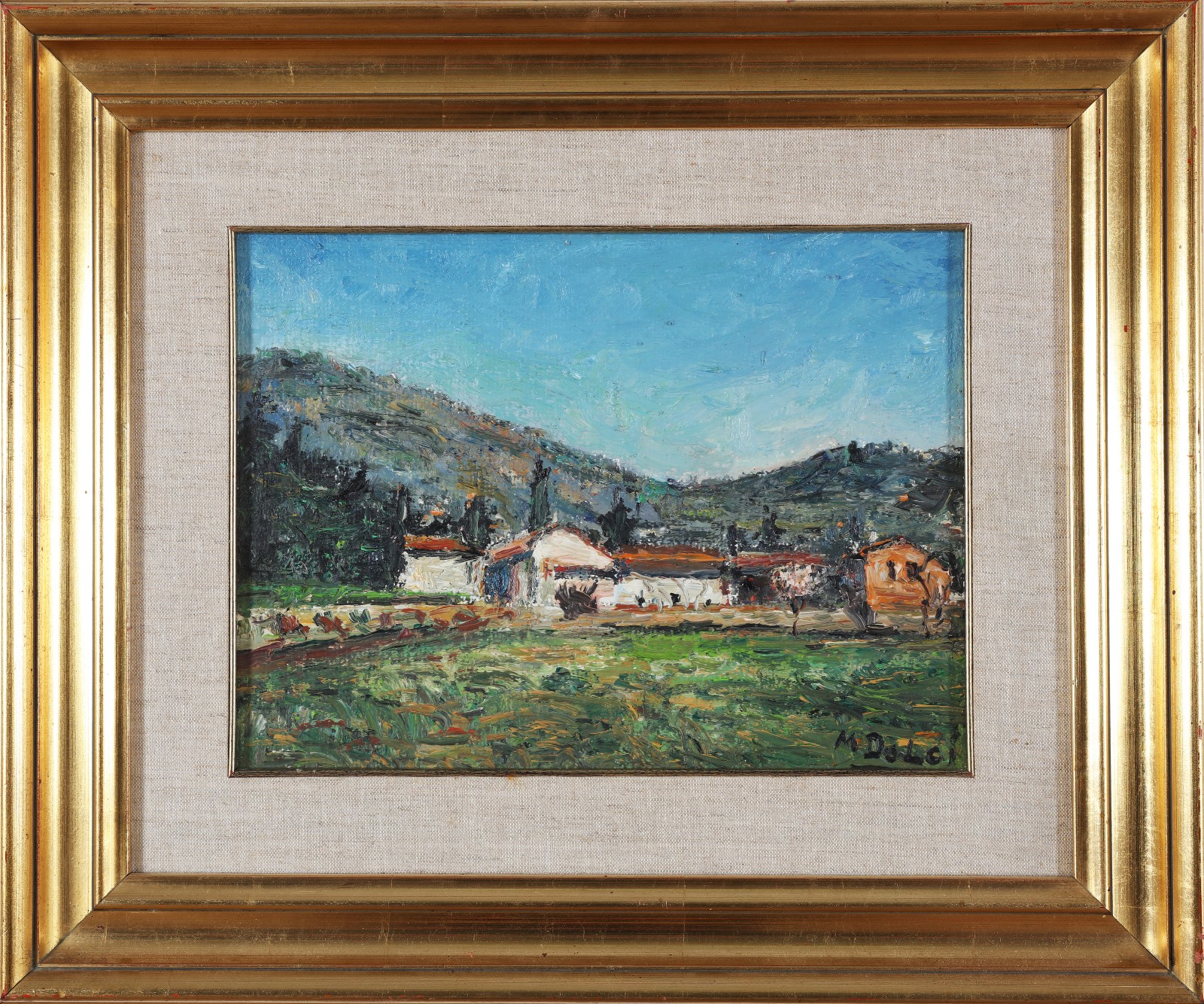 DOLCI MARTINO (1912 - 1994) Paesaggio. Olio su tela applicata su masonite. Cm 40,00 x 31,00. Firma in absso a destra. Al retro firma per autentica. Cornice presente