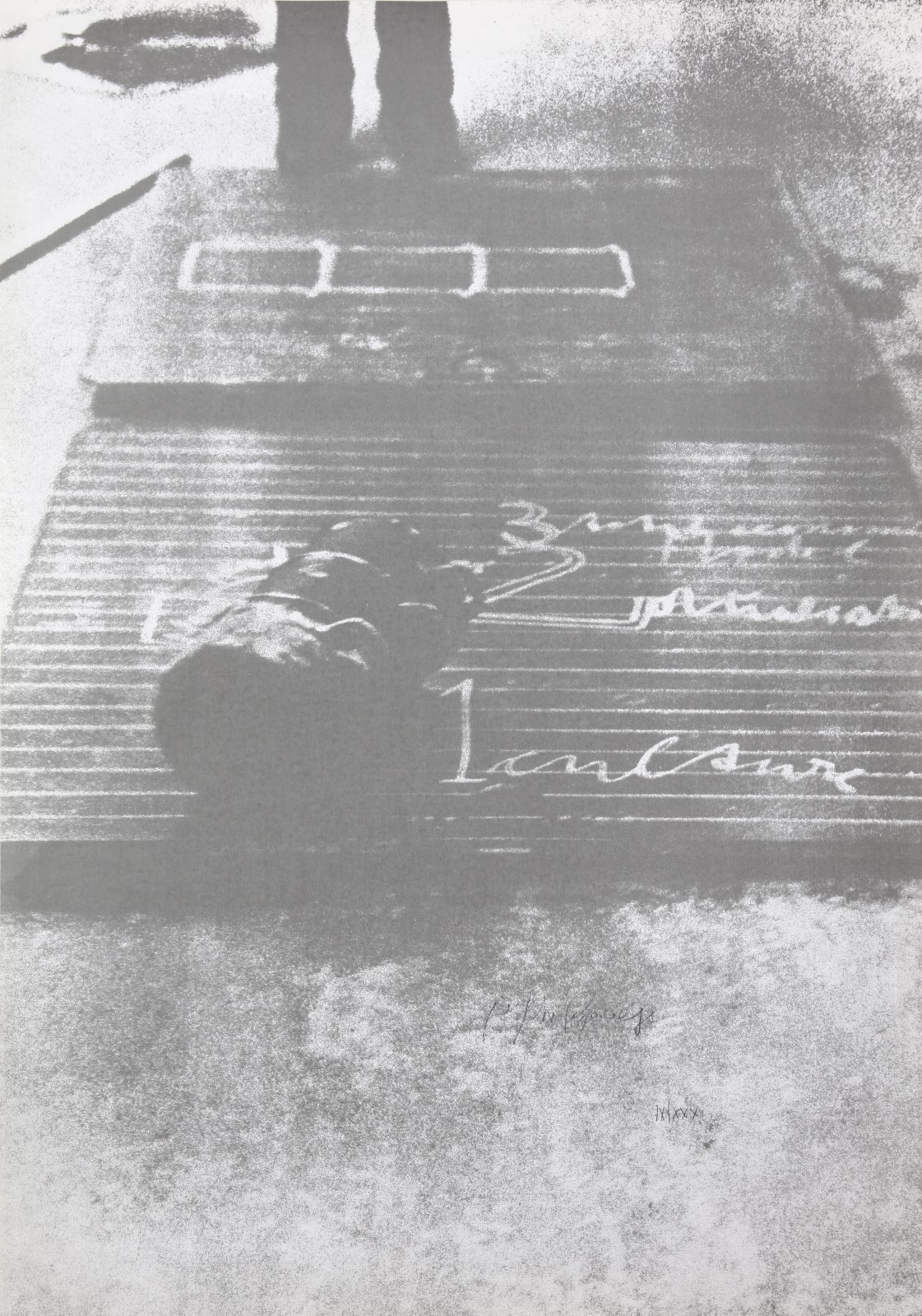BEUYS JOSEPH (1921 - 1986) In head and pot. Litografia. Cm 70,00 x 100,00. Tiratura: 100 + XXX + 20 P.A. Esemplare: IX. Edizioni Factotum Art, Verona. Firma e tiatura in basso a matita. Fotografia di Caroline Tisdall della performance Three pots action in the poor house, Edinburgo, Scozia. Pubblicazioni: Schellmann, tav. 205.