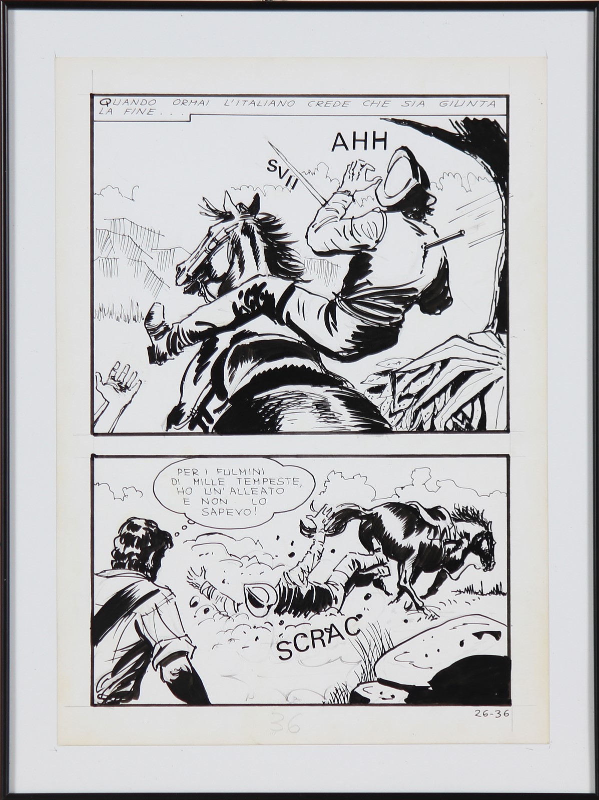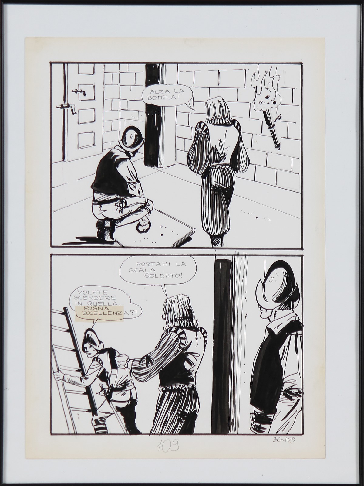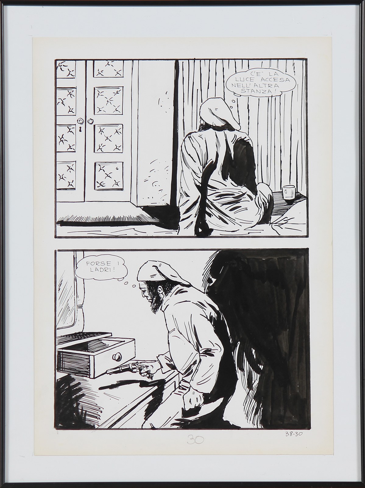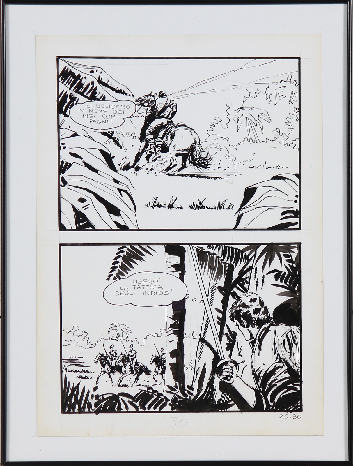 MANARA MILO (n. 1945) Quattro tavole dal fumetto Jolanda De Almaviva. China su cartonciono. Cm 25,00 x 35,00. 1971/74. Cornice presente