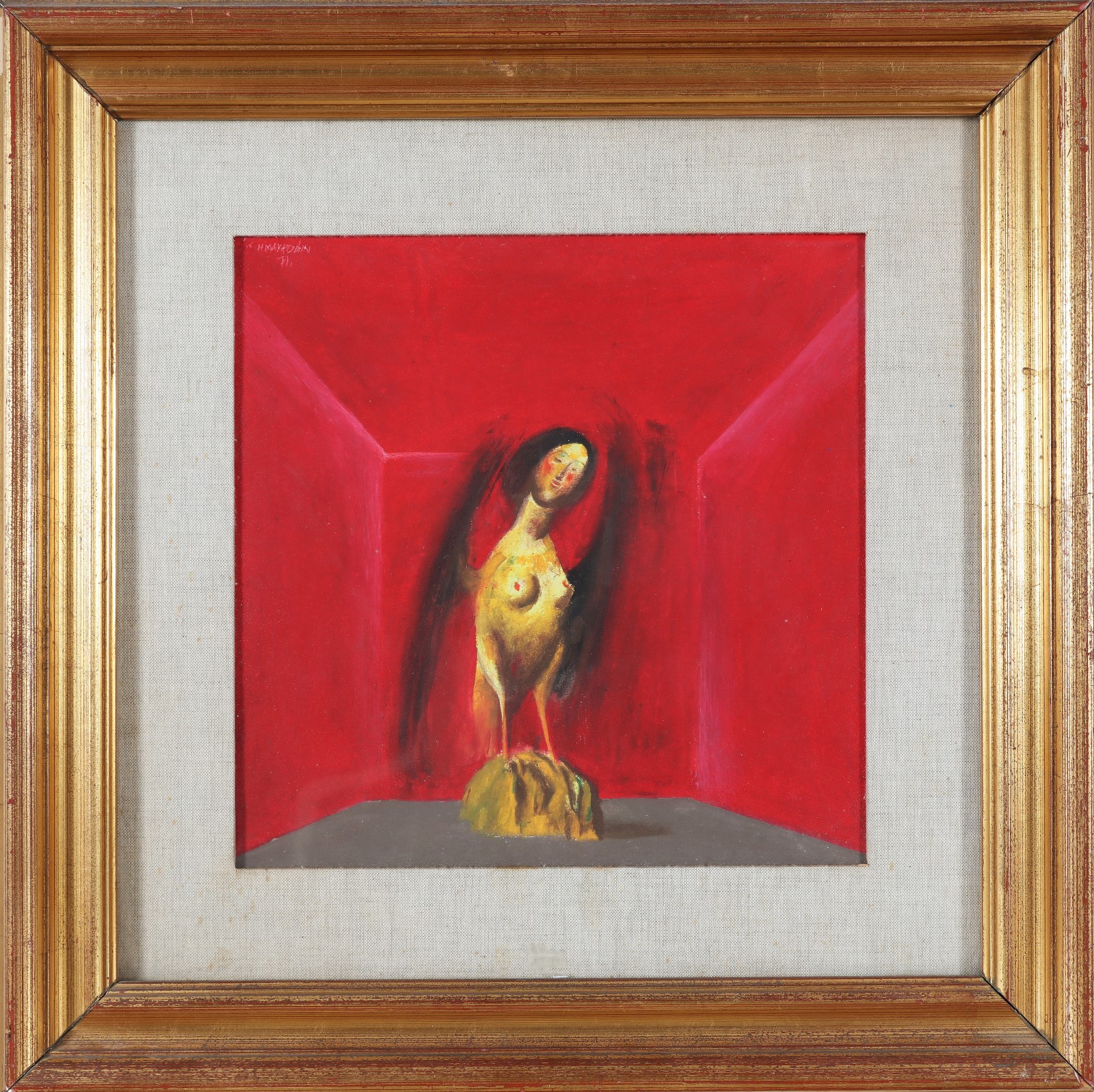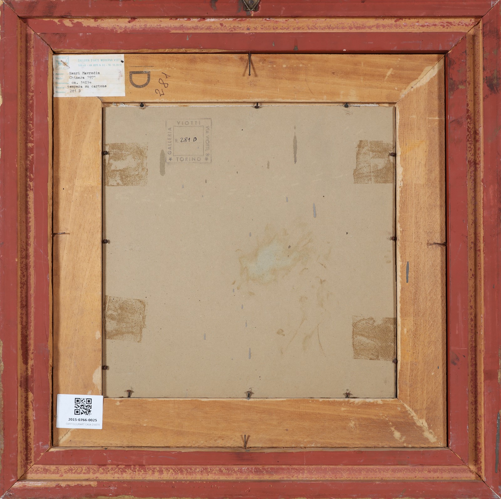 MAVRODIN HENRY (n. 1937) Chimera. 1971. Tecnica mista su cartoncino. Cm 34,00 x 34,00. Firma e anno in alto a sinistra. Al retro cartiglio descrittivo e timbro a cura della Galleria d'Arte Moderna Viotti, Torino. Cornice presente
