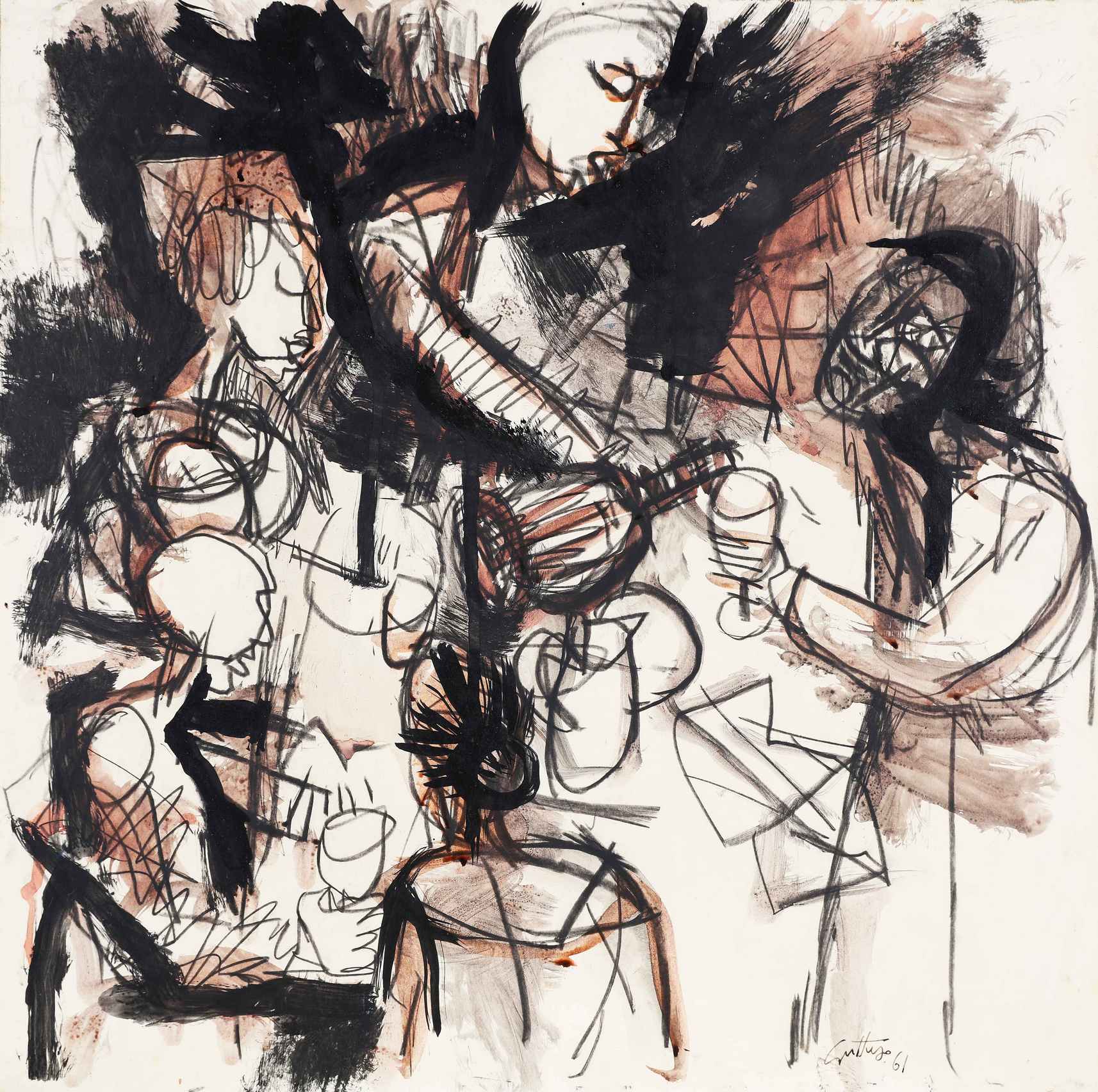 GUTTUSO RENATO (1912 - 1987) Senza Titolo. 1961. Tecnica mista su carta...