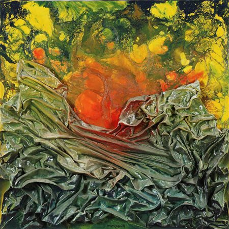 GUIDA MARIO (n. 1931) Senza titolo. Olio e tecnica mista su tela. Cm 70,00 x 70,00. Al retro firma e timbro a cura dell'artista.
