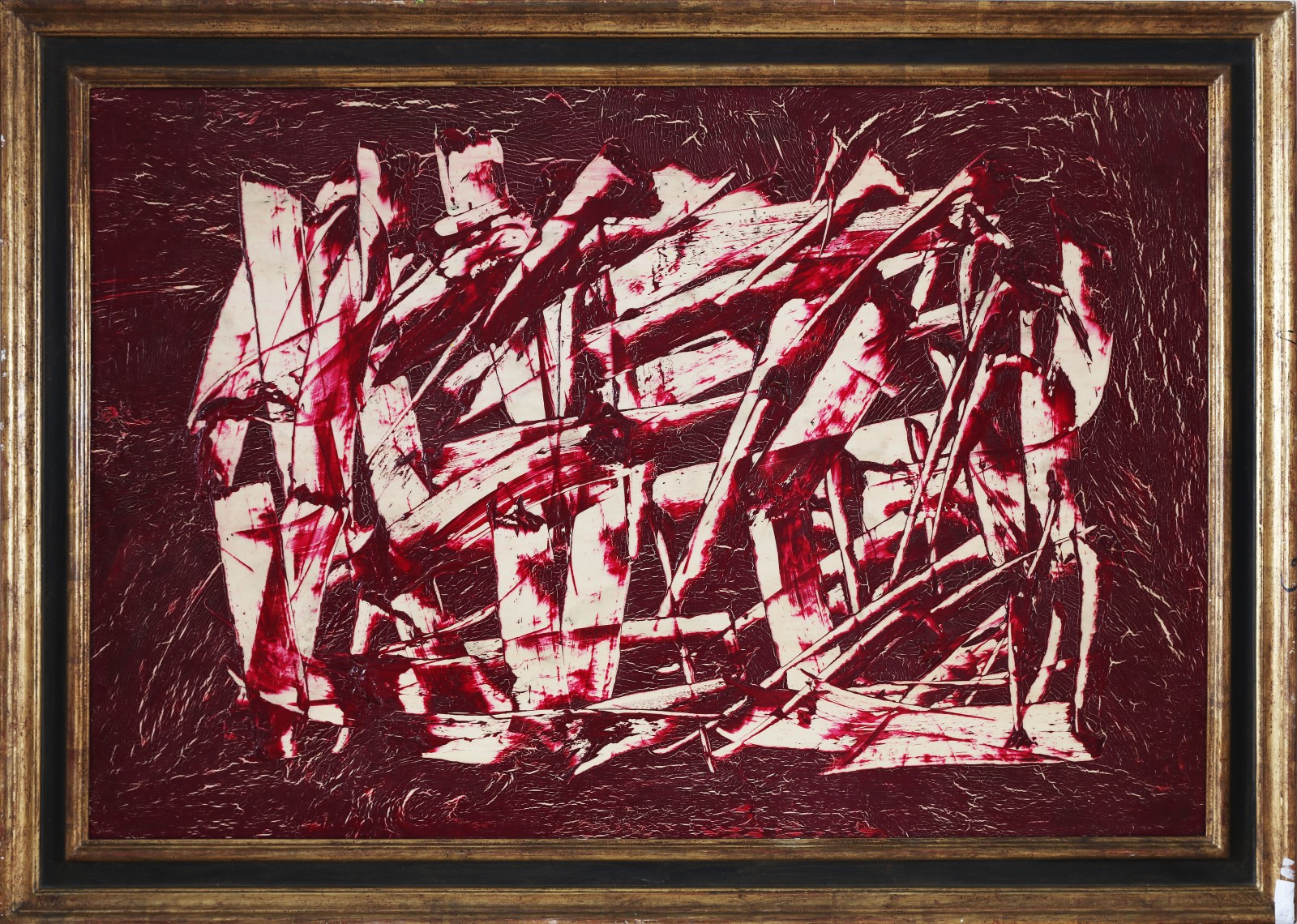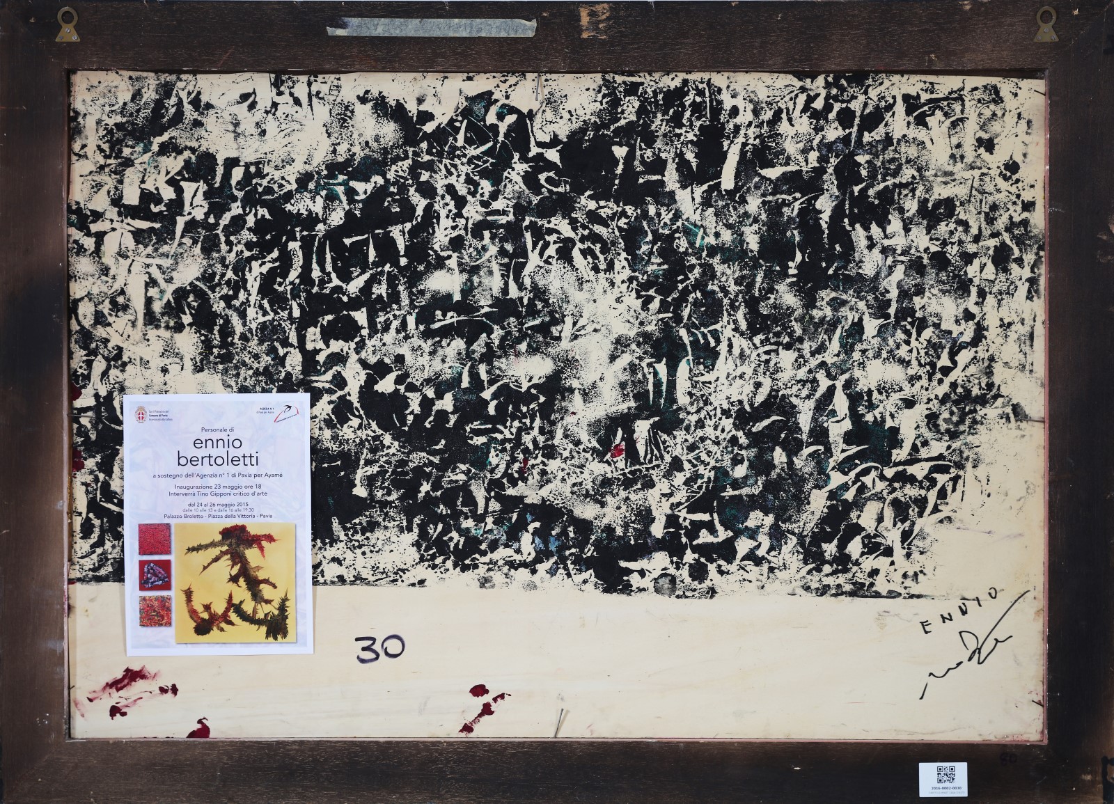 BERTOLETTI ENNIO Senza titolo. Tecnica mista su tavola. Cm 110,00 x 75,00. Firma al retro. Autentica dell'artista su fotografia. Cornice presente