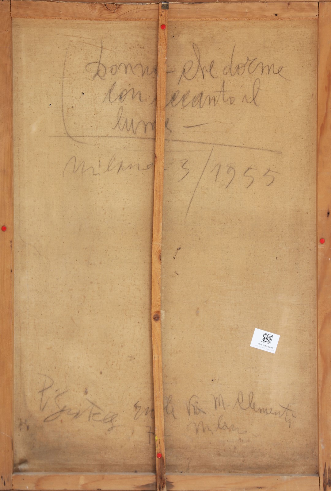PIGNATELLI ERCOLE (n. 1935) Donna che dorme con accanto il lume. 1955. Olio su tela. Cm 70,00 x 100,00. Firma e anno in basso a destra. Al retro titolo, firma e anno.