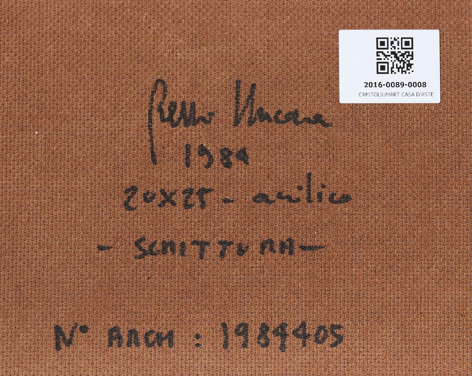 NUCARA RENZO (n. 1955) Scrittura. 1984. Acrilico su faesite. Cm 20,00 x 25,00. Autentica dell'artista su fotografia. Firma e anno in basso a destra. Firma titolo e anno al retro.