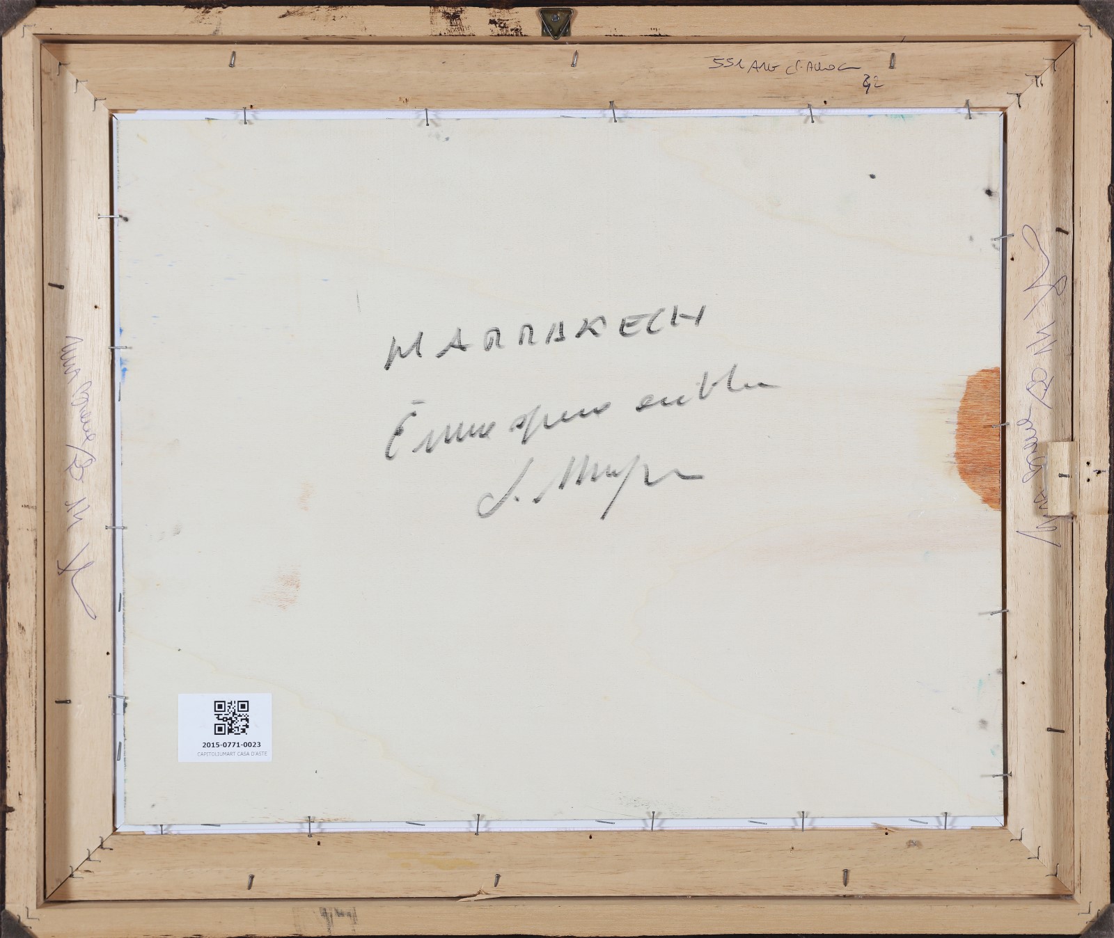 MAGAZZINI SALVATORE (n. 1955) Marrakech. Olio su tavola. Cm 50,00 x 40,00. Firma in basso a destra. Al retro titolo e firma per autentica. Cornice presente