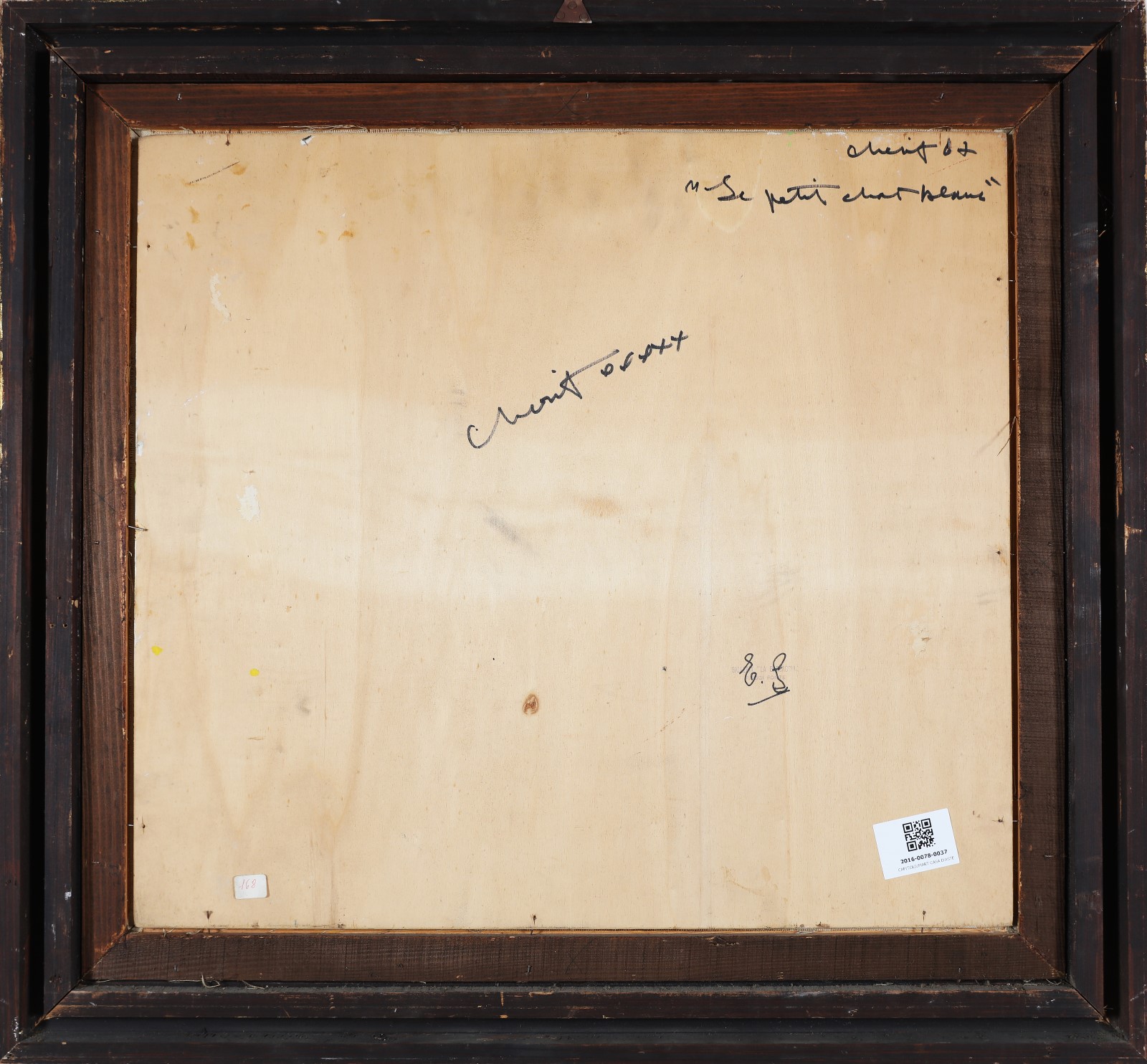 MCINSTRY CHERIT (1928 - 2004) Le petit chat blanc. 1967. Tecnica mista su tavola. Cm 60,00 x 55,00. Firmato in basso a sinistra. Titolo, firma, anno e timbro della Galleria La Barcaccia, Fiuggi al retro.