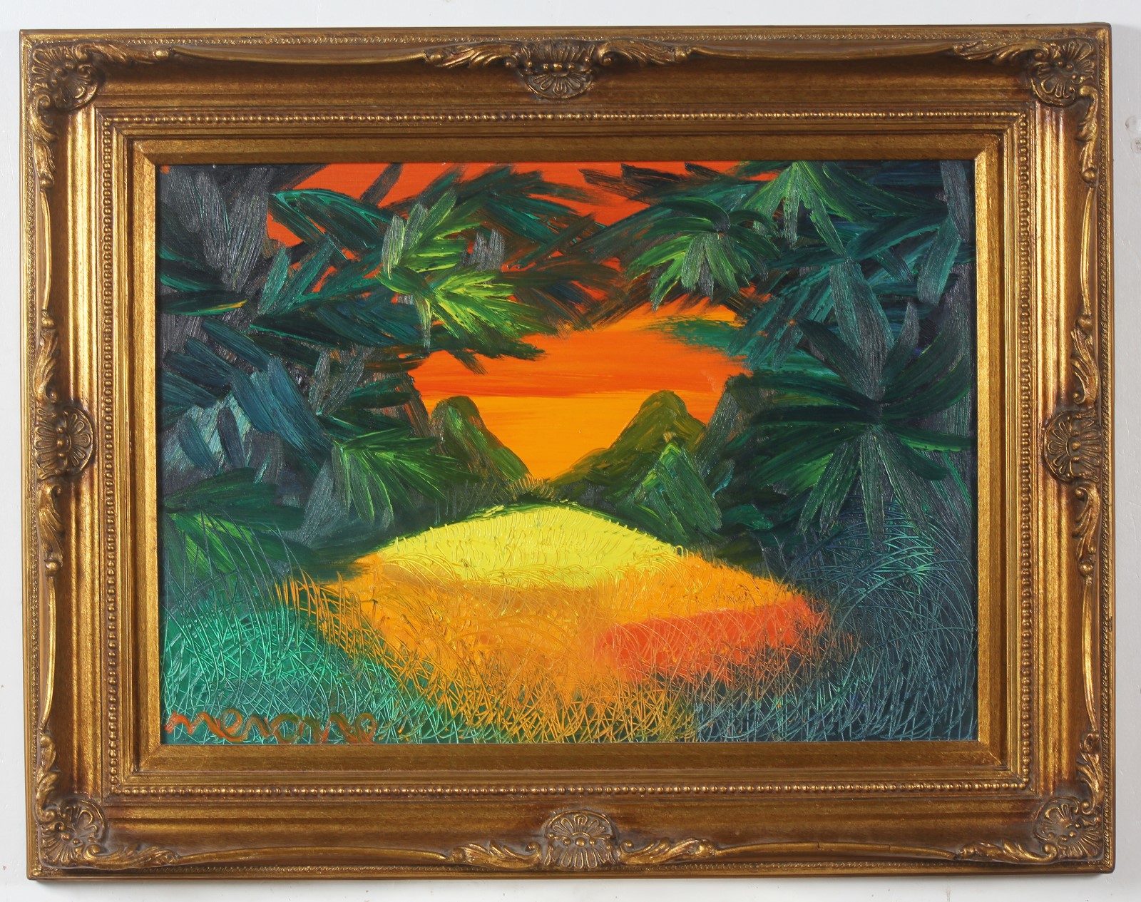 DI LUZZARA NERONE (n. 1939) Campo di grano. Olio su tela . Cm 70,00 x 50,00. Firma in basso a sinistra. Al retro titolo e firma. Cornice presente
