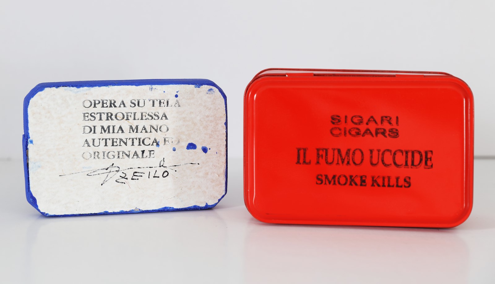 AMADIO GIUSEPPE (n. 1944) Zeilo smoke. Acrilico su tela estroflessa. Cm 14,00 x 9,00. Titolo e firma al retro. Opera conservata nella suo scatola d'artista. Certificato di autenticità a cura dell'artista.