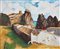 MESCHIS RENZO (n. 1945) Scopello. 1983. Olio su tela. Cm 120,00 x 100,00. Firma in basso a destra. Firma in basso a destra. Al retro cartiglio descrittivo a cura della Galleria d'Arte Moderna Viotti, Torino.