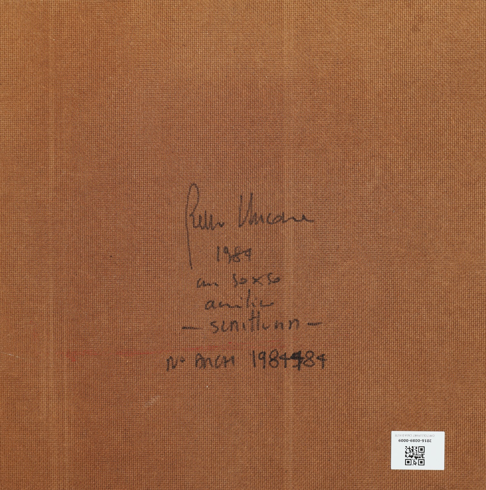 NUCARA RENZO (n. 1955) Scrittura. 1984. Acrilico su faesite. Cm 50,00 x 50,00. Autentica dell'artista su fotografia. Firma e anno in basso a destra. Firma titolo e anno al retro.