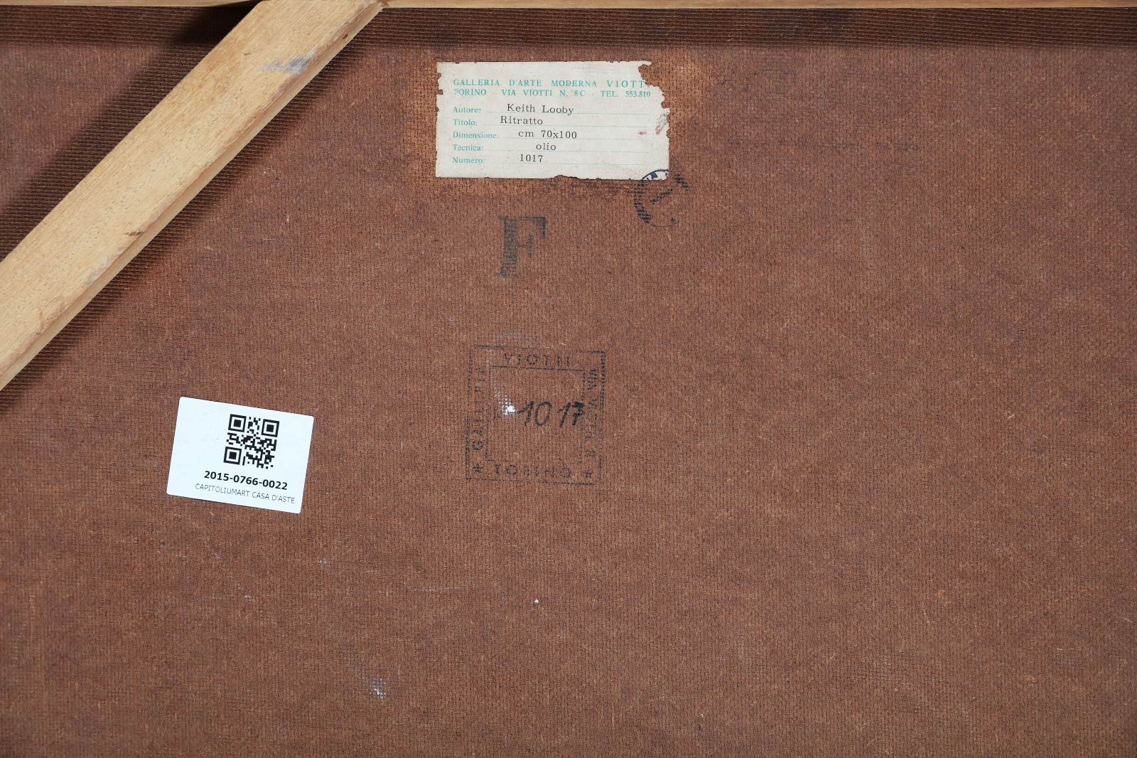 LOOBY KEITH (n. 1940) Ritratto. 1962. Olio su faesite. Cm 70,00 x 100,00. Al retro cartiglio descrittivo con timbro a cura della Galleria d'Arte Moderna Viotti, Torino. Cornice presente