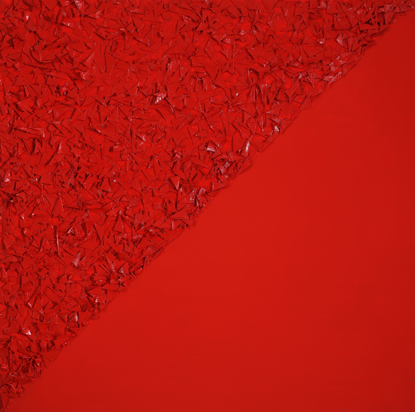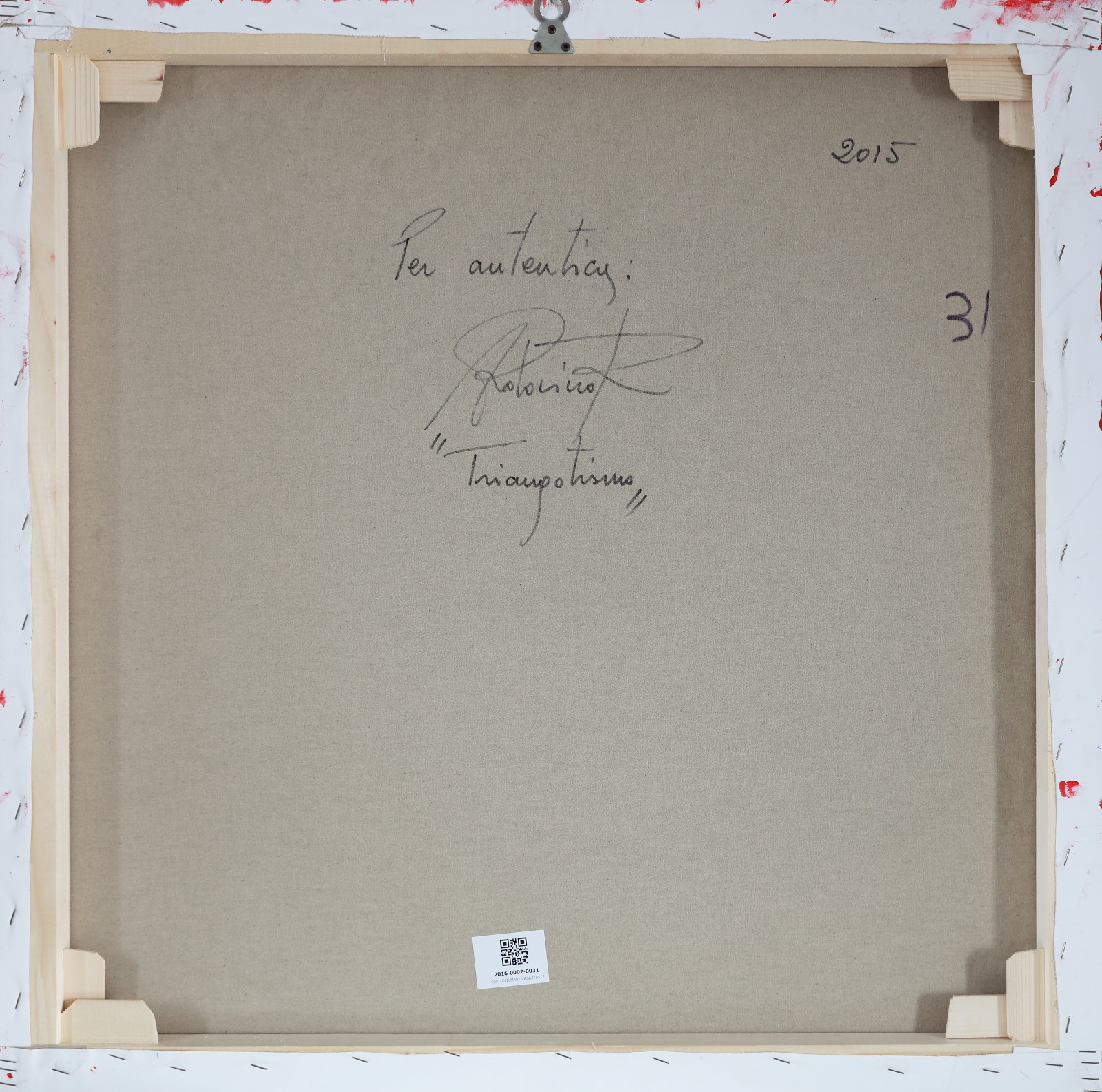 ARDOVINO ROBERTO (n. 1952) Triangolismo rosso. 2015. Tecnica mista su tela. Cm 80,00 x 80,00. Al retro titolo, firma per autentica e anno. Autentica dell'artista su fotografia.