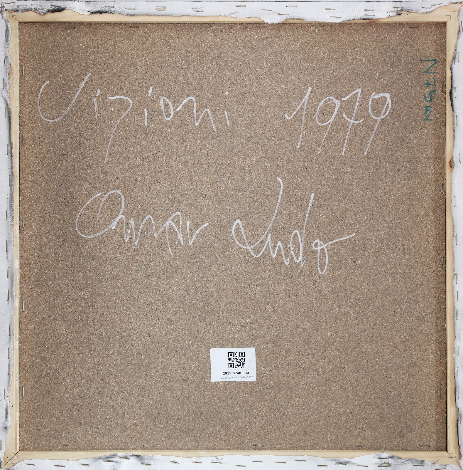 LUDO OMAR (n. 1953) Visioni. 1979. Acrilico su tela applicata su tavola. Cm 55,00 x 55,00. Al retro titolo, firma e anno. Autentica dell'artista su fotografia.
