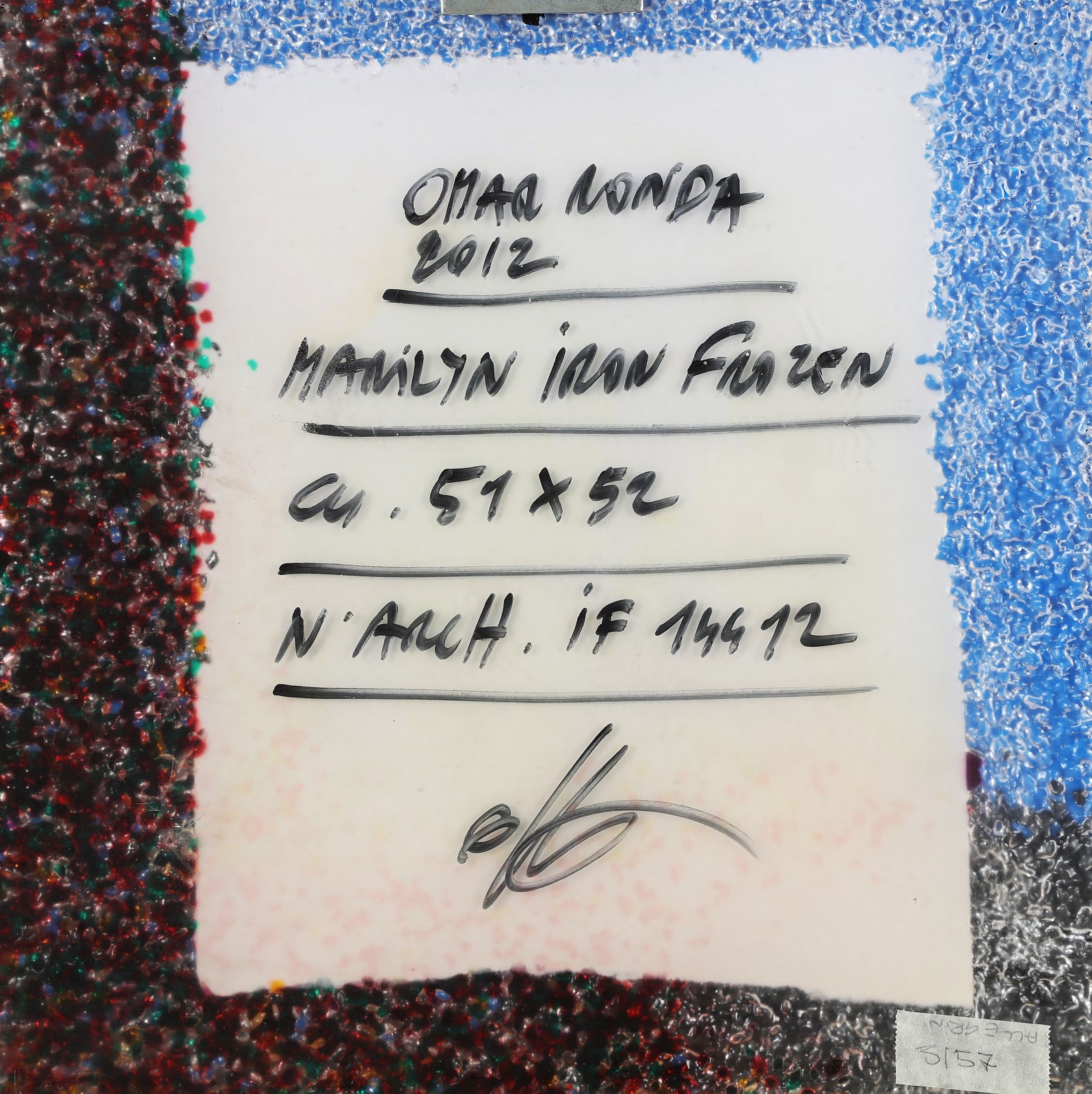RONDA OMAR (n. 1947) Marilyn Frozen. 2012. Intervento su lamiera. Cm 52,00 x 51,00. Al retro firma, titolo e anno. Autentica dell'artista su fotografia.