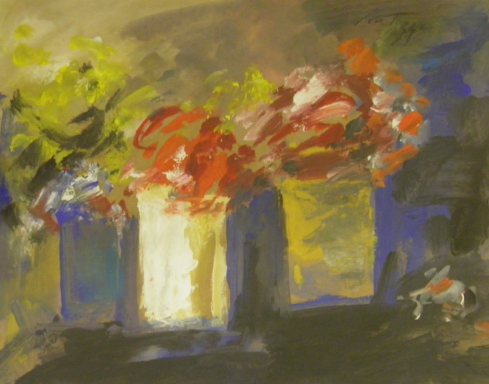 SCATIZZI SERGIO 1918 2009 NATURA MORTA OLIO SU CARTONE cm 32 x 42 Firma in alto a destra e al retro Autentica del Maestro su fotografia