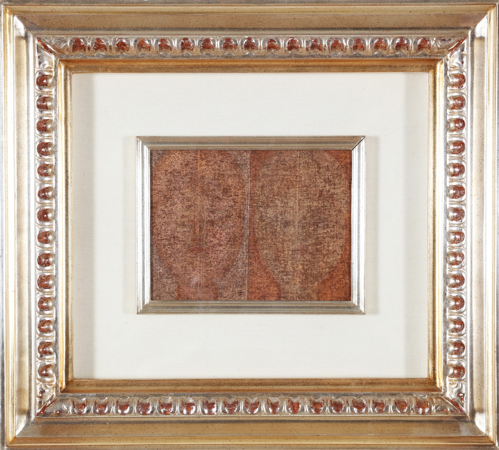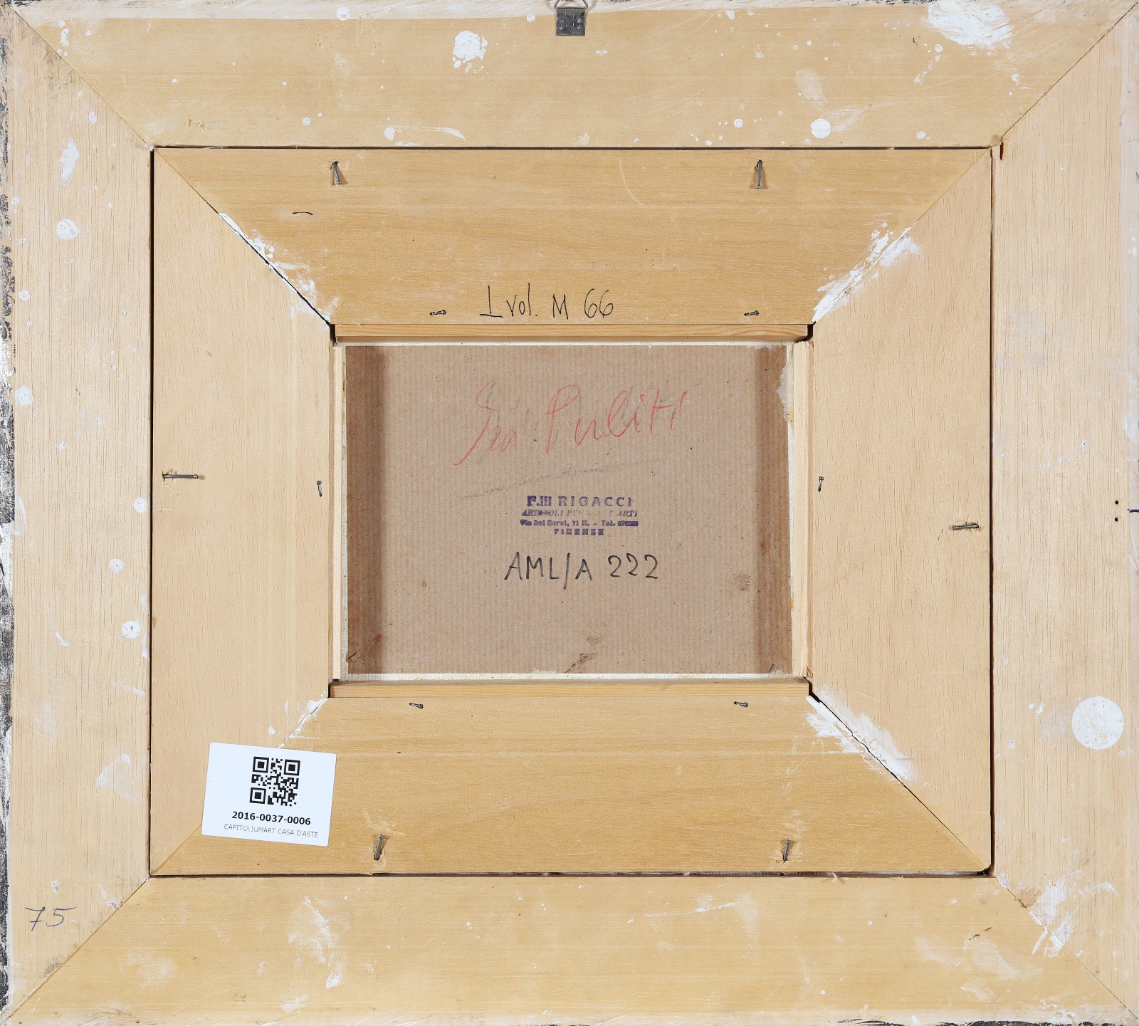 BUENO ANTONIO (1918 - 1985) Doppia impronta. 1961. Olio su tela. Cm 20,00 x 14,00. Firma in alto al centro. Opera archiviata presso l'Archivio Fotografico Generale delle Opere di Antonio Bueno come da documentazione fotografica allegata all'opera riportante il relativo numero d'inventario e la firma di Giovanni Battista Bianco. Pubblicazioni: Catalogo Generale, Volume I, Tav. 66, Edizione Mondadori. . Cornice presente