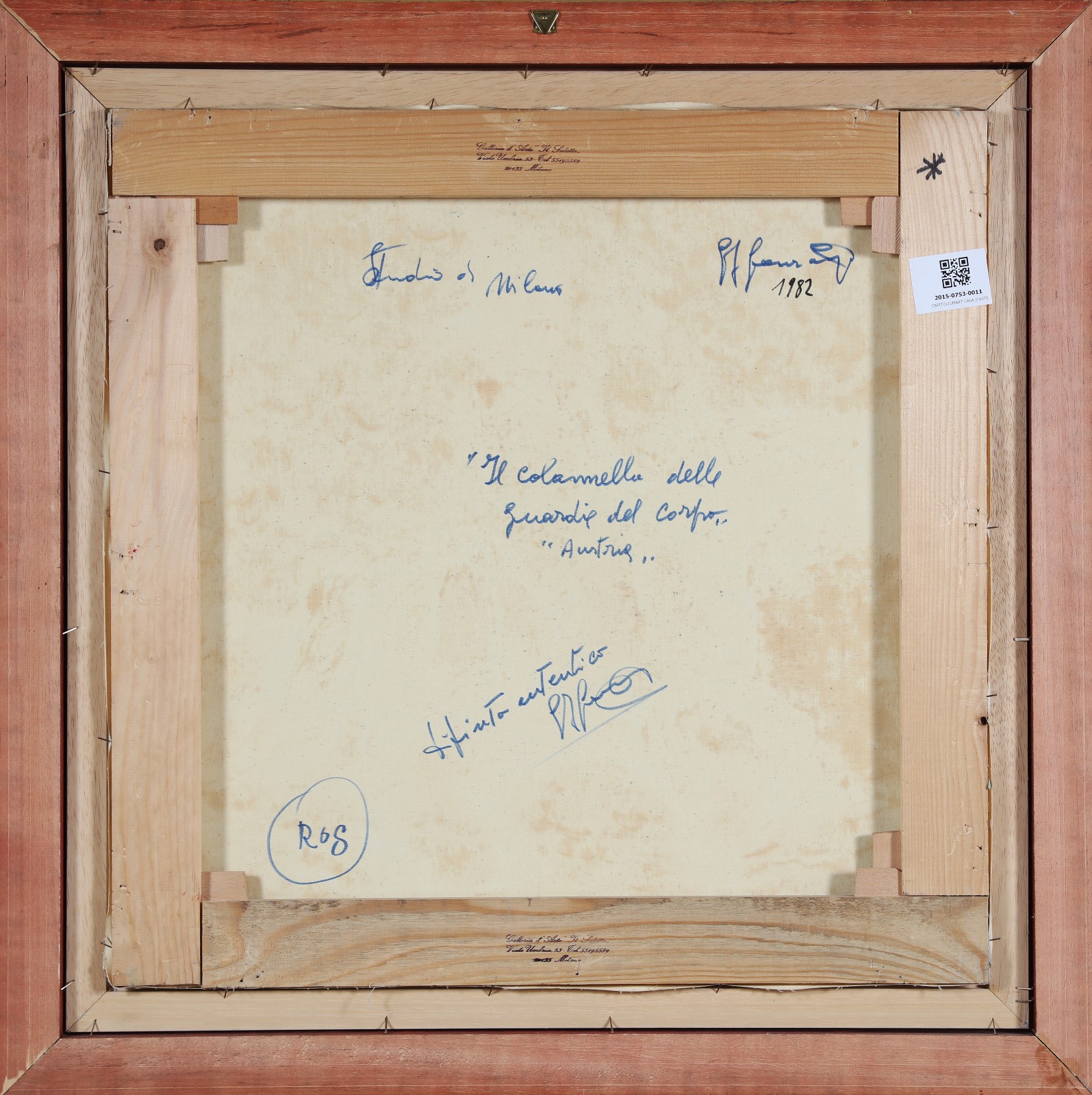 GONZAGA GIOVAN FRANCESCO (1921 - 2007) Il colonnello dell guardia del corpo Austria. 1982. Olio su tela. Cm 60,00 x 60,00. Firma in basso a destra. Al retro titolo, firma, anno e firma per autentica. Autentica dell'artista su fotografia a cura della Galleria d'Arte Il Salotto, Milano.