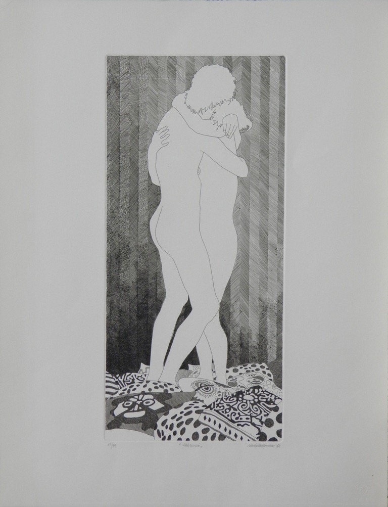STEFANONI ATTILIO BERGAMO 1938 ABBRACCIO, 1982 LITOGRAFIA cm 65 x 50 Firma e titolo in basso Certificato Nuovo Torcoliere Esemplare 63/99