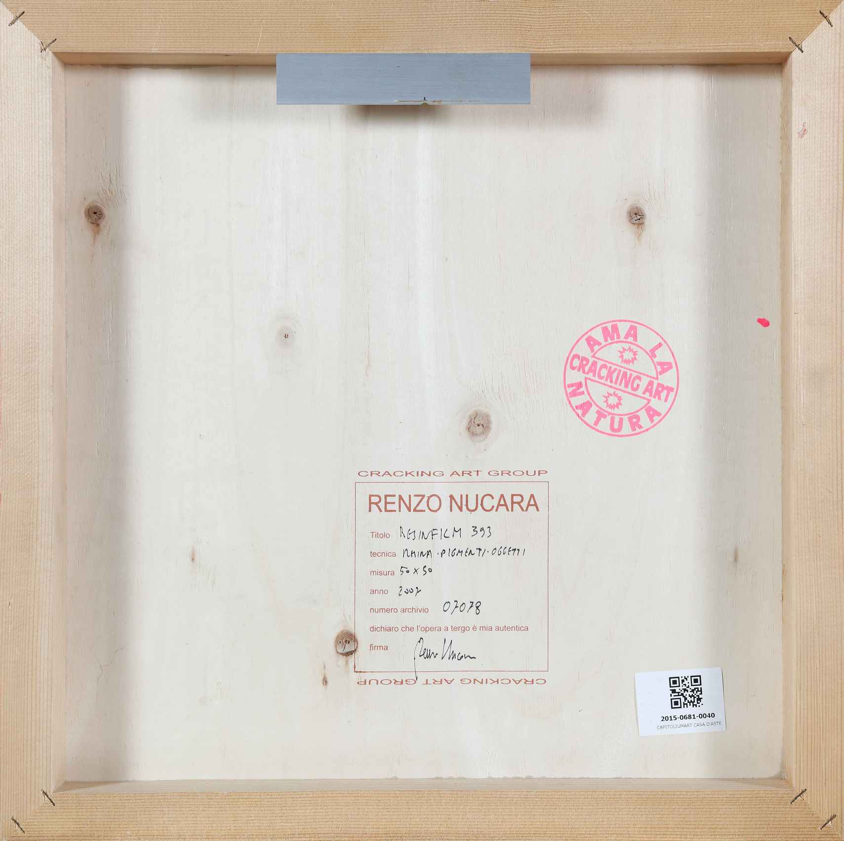 NUCARA RENZO (n. 1955) Resinfilm 393. 2007. Tecnica mista su tavola. Cm 50,00 x 50,00. Al retro timbro descrittivo a cura di Cracking Art Group firmato dall'artista con il relativo numero d'inventario. Autentica dell'artista su fotografia riportante il relativo numero d'inventario.