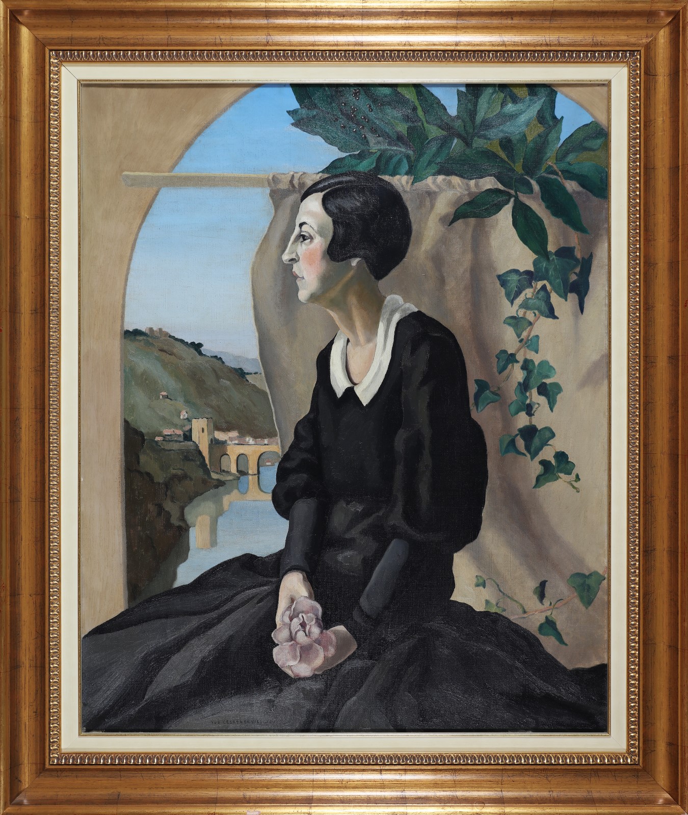 CELADA DA VIRGILIO UGO (1895 - 1995) Ritratto nel paesaggio. Olio su tela. Cm 81,00 x 100,00. Firma in basso a sinistra. Cornice presente