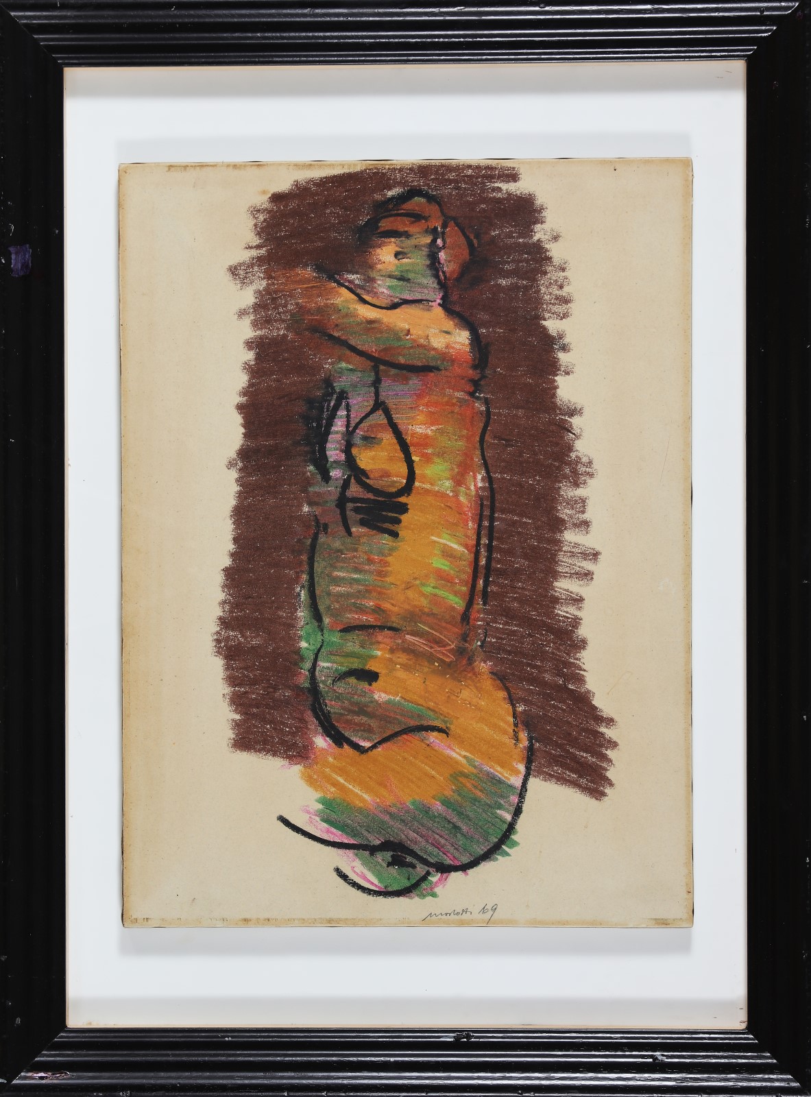 MORLOTTI ENNIO (1910 - 1992) Nudo n.1. 1969. Pastello su carta intelata. Cm 41,00 x 55,00. Firma e anno in basso al centro. Autentica dell'artista e timbro della galleria annunciata con numero di archivio su fotografia. Provenienza: Asta 55, lotto 35, Casa d'aste Blindarte, Napoli 29 Maggio 2012.