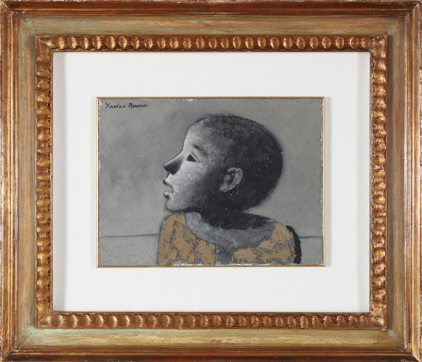 BUENO XAVIER (1915 - 1979) Bambino. . 1972. Olio su cartone telato. Cm 40,00 x 30,00. Firma in alto a sinistra. Al retro firma. Opera archiviata presso l'Archivio Bueno, Arte Capital, come da documentazione fotografica allegata all'opera riportante il numero d'inventario e la firma di Giovan Battista Bianco. Cornice presente