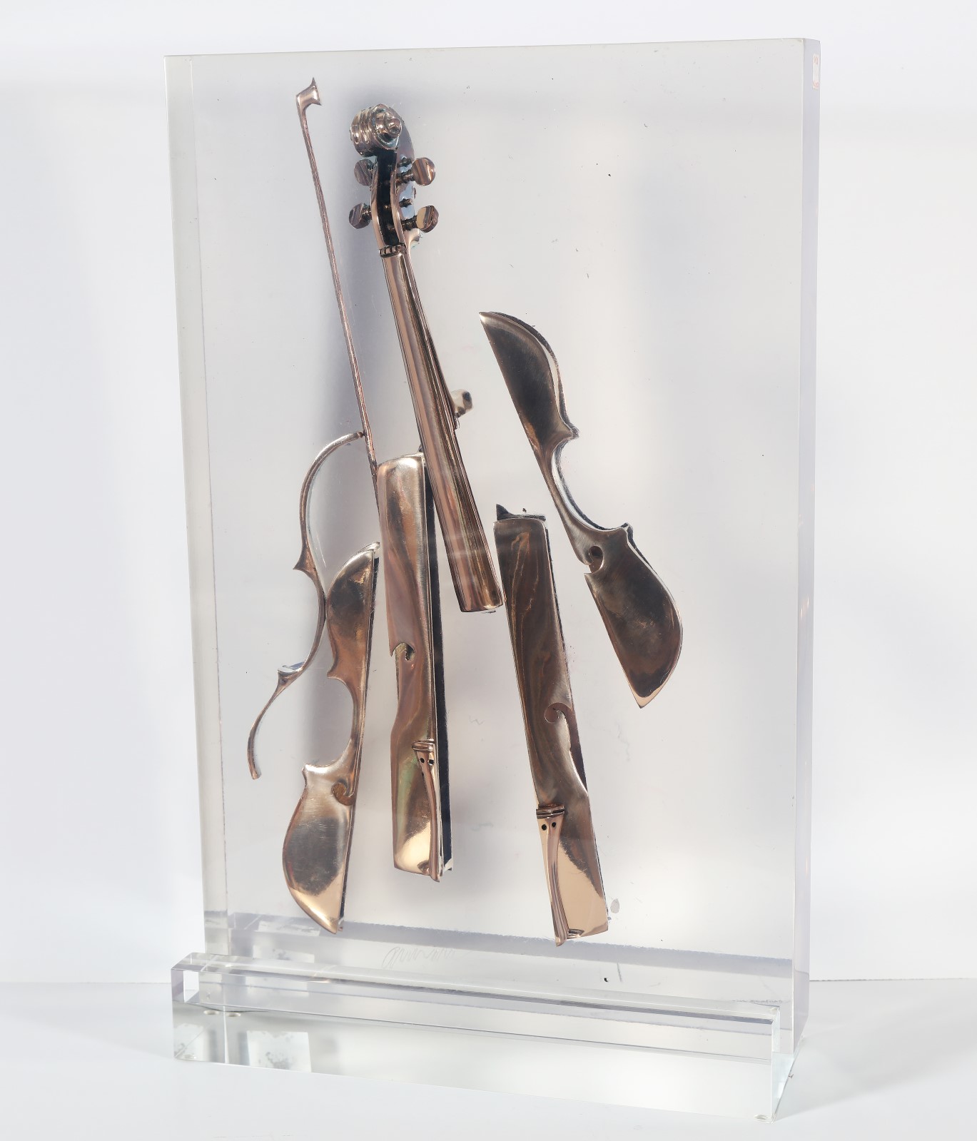 ARMAN FERNANDEZ (1928 - 2005) Colère Europa. Violino scomposto. 2004. Bronzo dorato. Cm 47,00 x 72,00 x 8,00. 77/99. Firma in basso al centro e tiratura sul lato destro. Certificato di Garanzia e Autenticità a cura della Casa delle Aste Meeting Art, Vercelli.