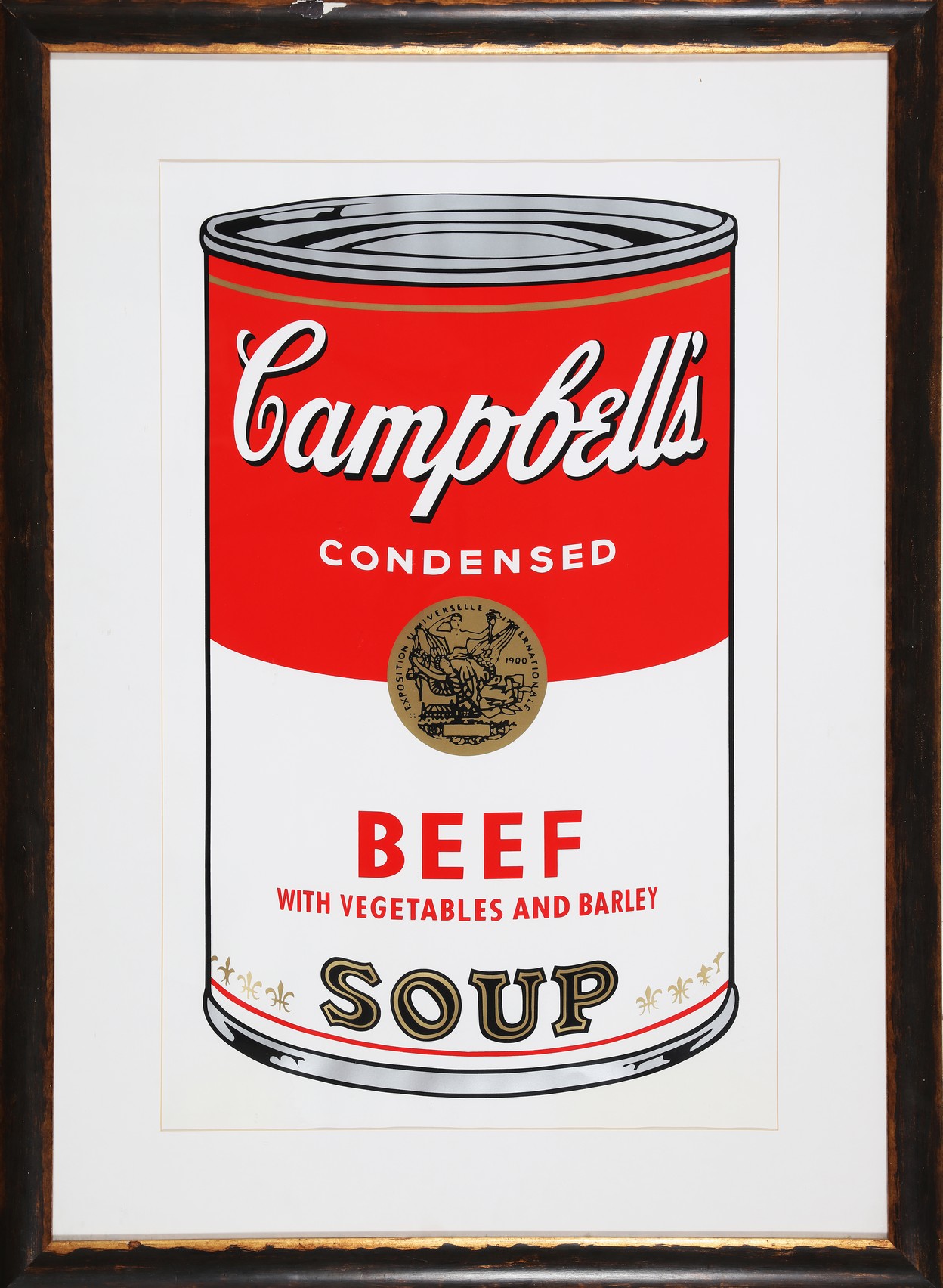 WARHOL ANDY (1928 - 1987) Campbell's Soup. 1968. Serigrafia. Cm 58,20 x 88,80. 61/250. Leggera macchia di umidità nell'angolo in basso a sinistra. Al retro: firma in basso a sinistra a biro, tiratura a stampino in basso a destra. Cornice presente