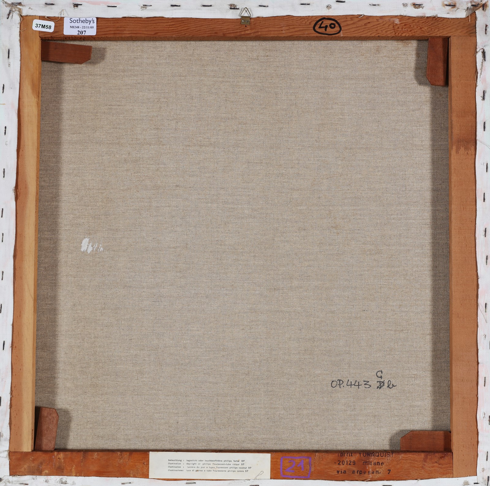 TORNQUIST JORRIT (n. 1938) OP.443 CB. Acrilico su tela. Cm 60,00 x 60,00. Anni '70. Firma, titolo e cartiglio Sotheby's al retro. Provenienza: Galleria Team Colore, Milano; Sotheby's, Milano, 22 Novembre 2005, lotto 209, ivi acquistato dall'attuale proprietario.