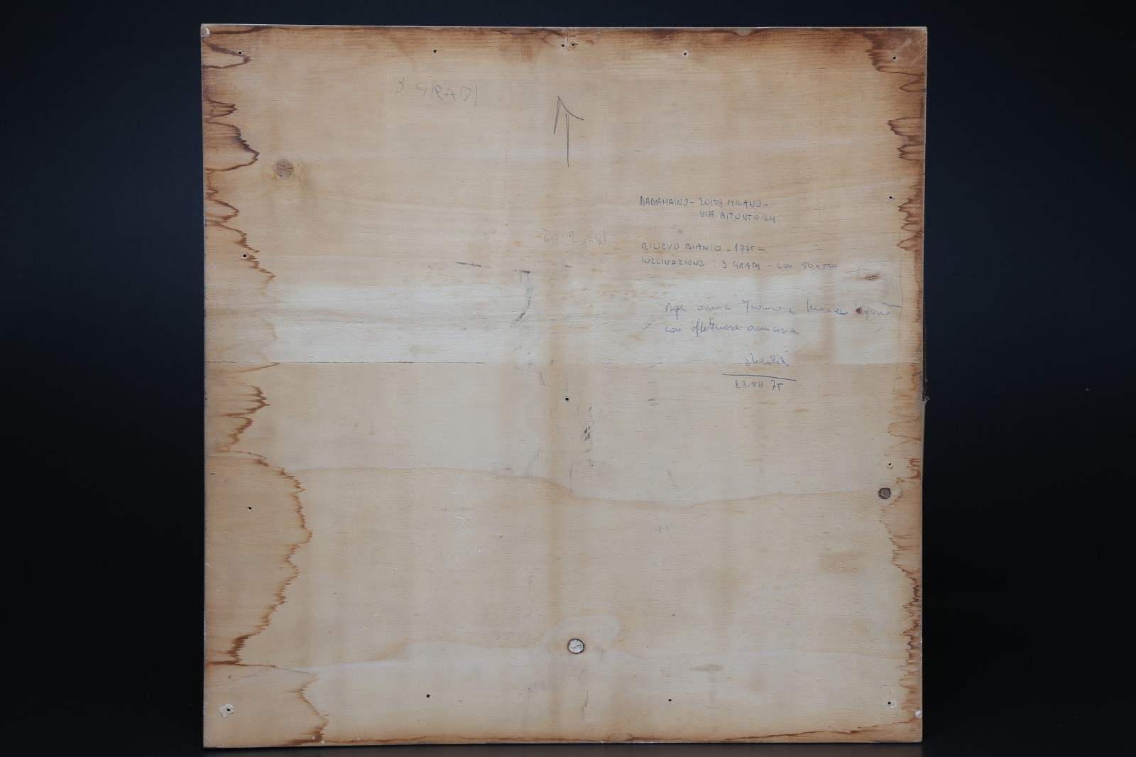 DADAMAINO (1935 - 2004) Cromorilievo. 1975. . Cm 50,00 x 50,00. Title, signature, year and dedication to Franco and Maria Viganò at the back. Dadamaino Archives, Milano, certificate on photo. Craquelure. Cornice presente