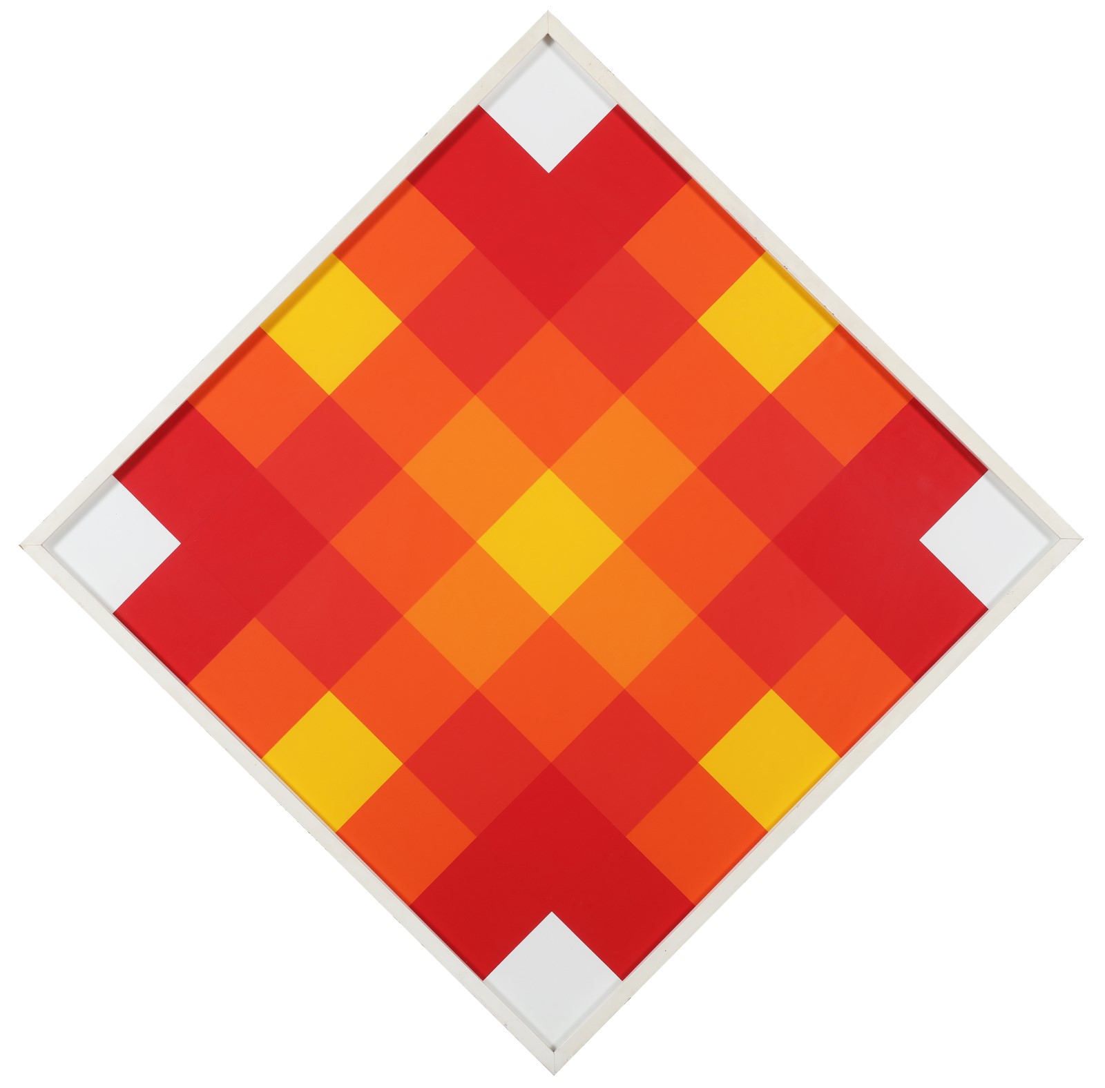 MINOLI PAOLO (1942 - 2004) Compenetrazioni lineari. Fase A. 1974. Olio su tela . Cm 70,00 x 70,00. Al retro titolo, firma e anno. Cornice presente