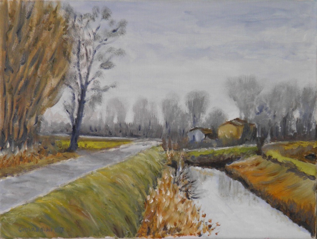 GIOVANNINI GIANCARLO PORTOMAGGIORE 1944 PAESAGGIO A MALALBERGO, 2007 OLIO SU TELA cm. 30 x 40 Firma e anno in basso a sinistra. Al retro certificato di autenticità a cura del Maestro.