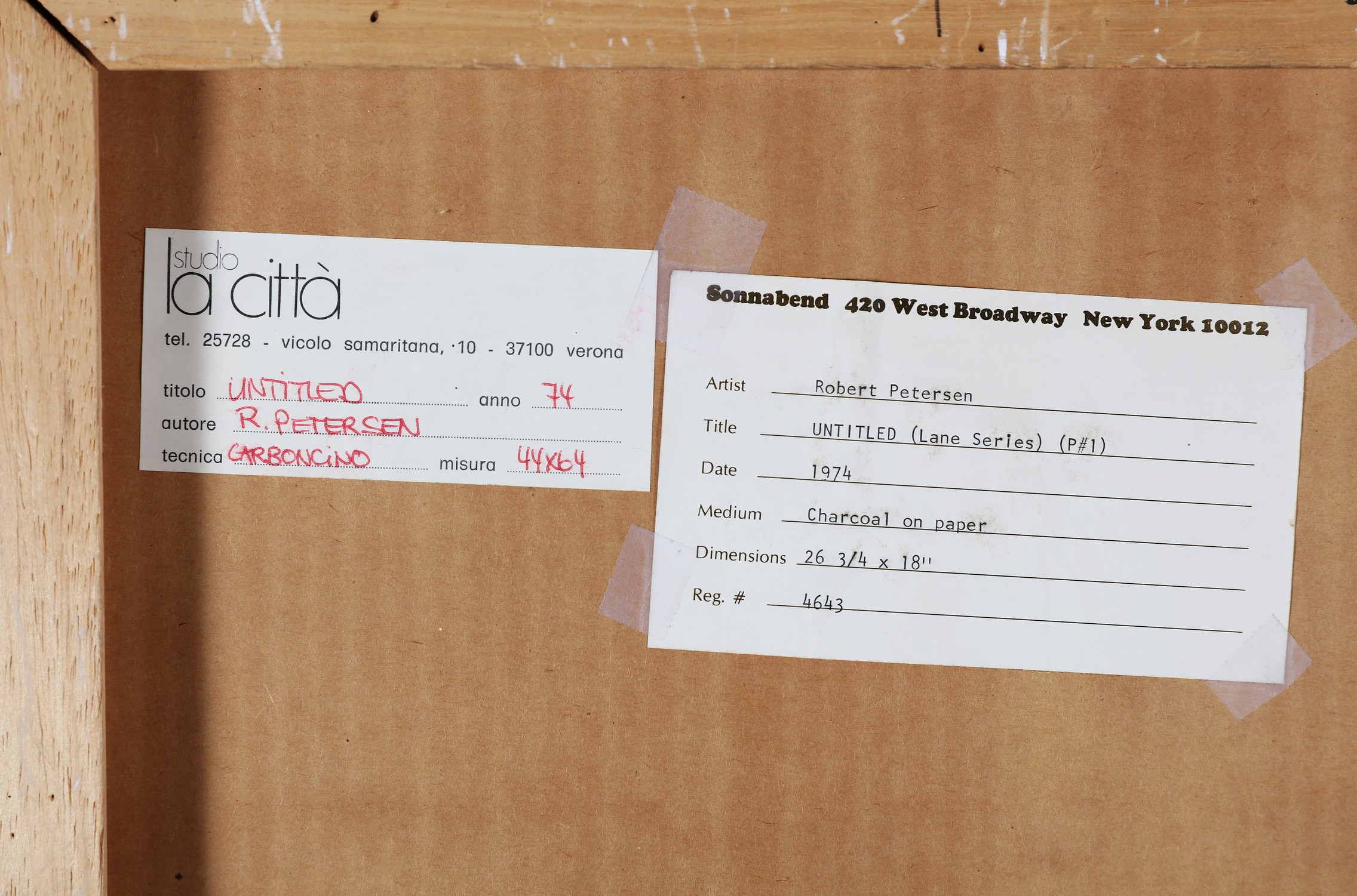 PETERSEN ROBERT (1882 - 1949) Untitled (Lane Series) #1. . 1974. Charcoal on paper. Cm 44,00 x 64,00. At the back brings the labels of the Studio La Città gallery, Verona and Sonnabend Gallery New York.