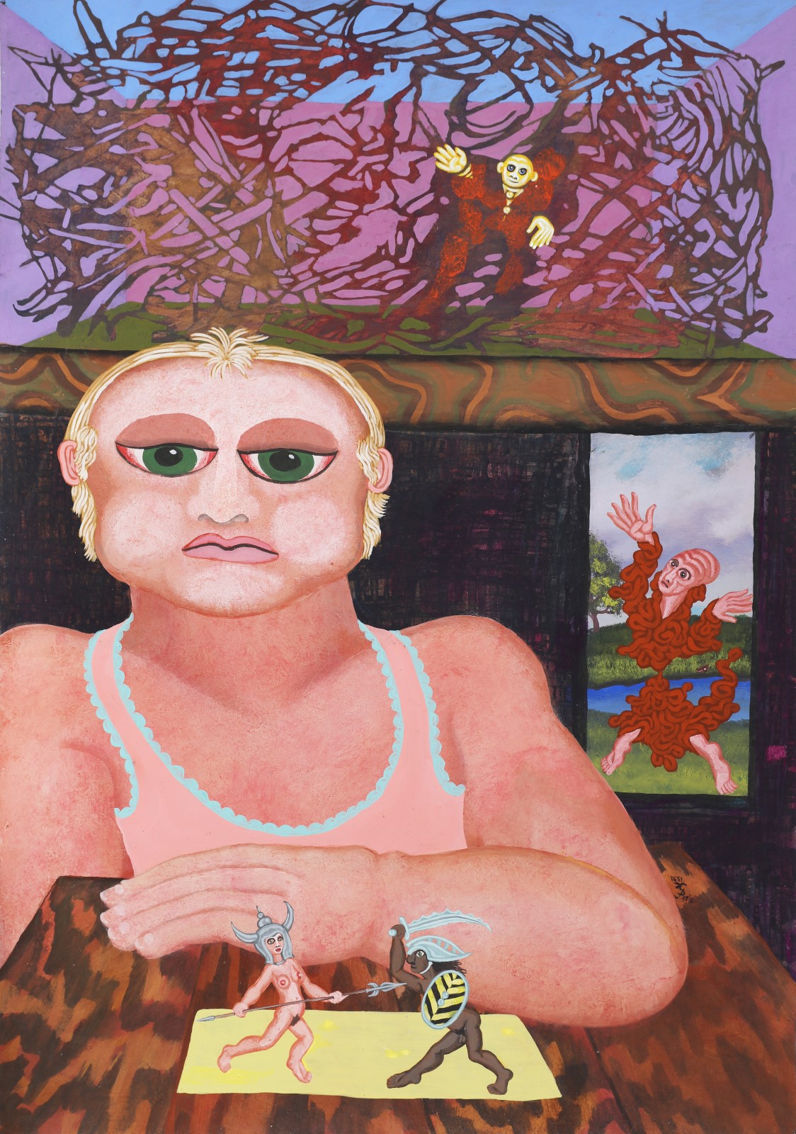 ZEPPEL SPERL ROBERT (1944 - 2005) Teatrino 1651. 1979. Tecnica mista su cartone. Cm 51,00 x 73,00. Firma in basso a destra e titolo al retro.