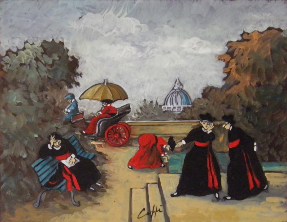 CAFFE' NINO ALFEDENA 1909 PESARO 1975 CARROZZELLA, 1969 ACC. DI TEL SOTTO PLEX cm 15,8 x 20 Firma in basso al centro Autentica a cura del Dott. Giorgio Borghi su fotografia