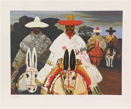 Salvatore Fiume, Messicani, litografia su carta, cm. 50x60, es. XV/XXV,...